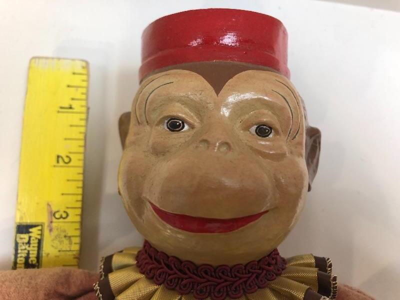 Vintage Wayne Kleski doorman bellhop monkey. Missing one button but in good vintage condition otherwise. 14" size. #020-01010