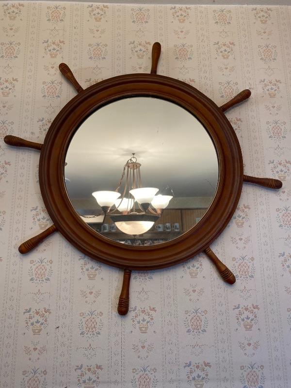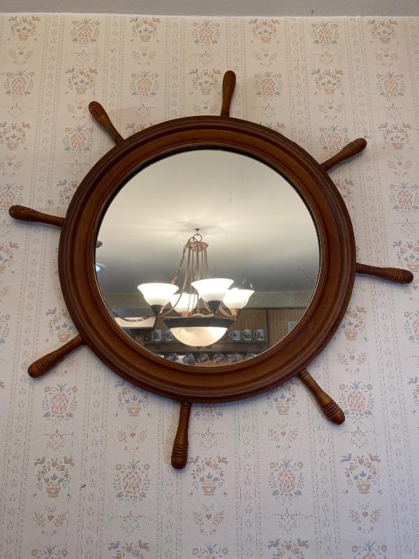 Vintage Ship’s Wheel Mirror Nautical Pirate Home Decor