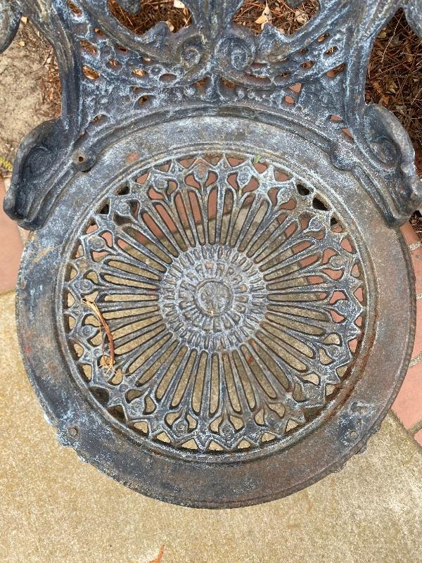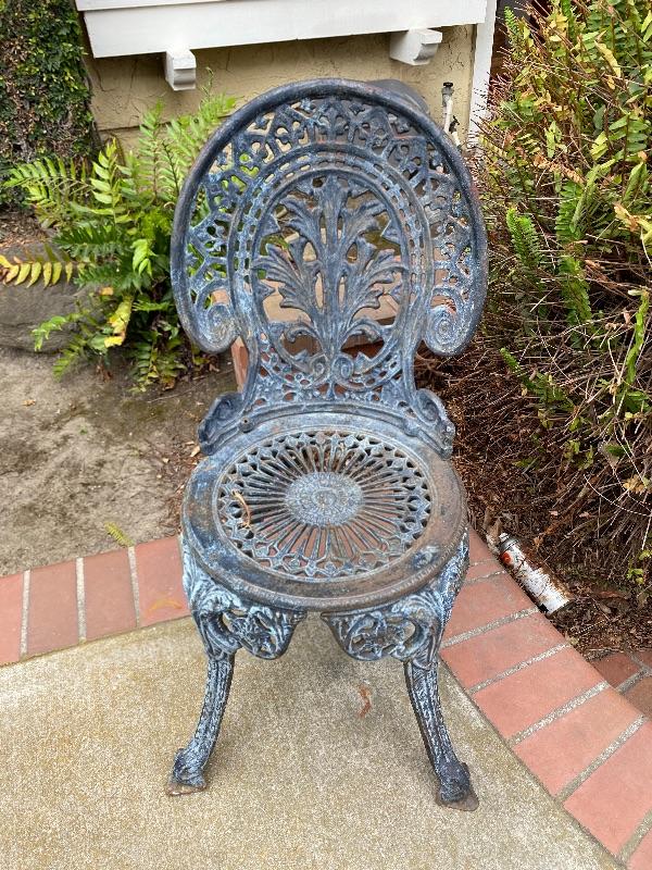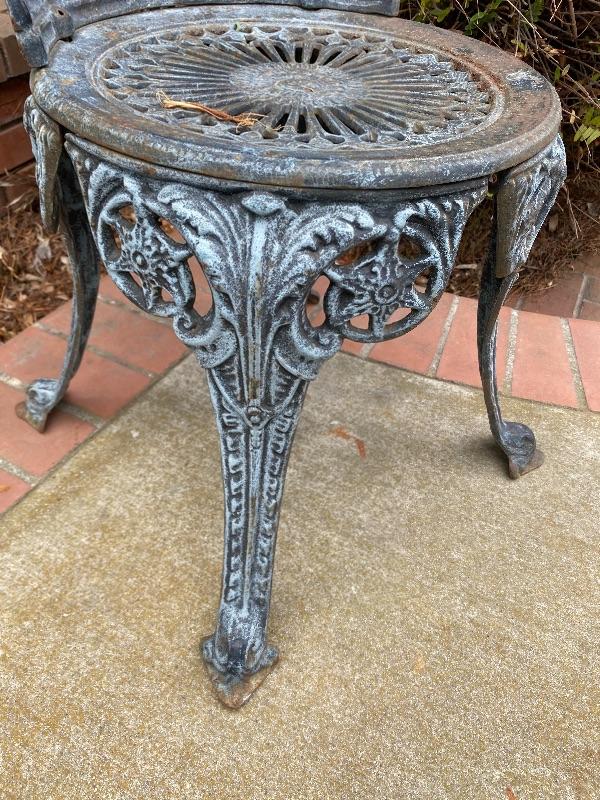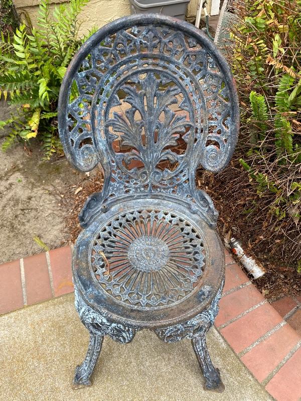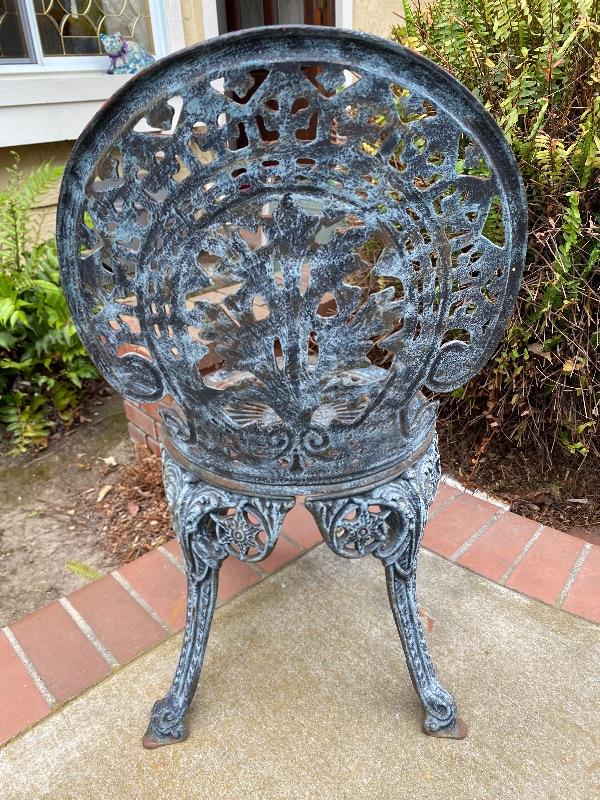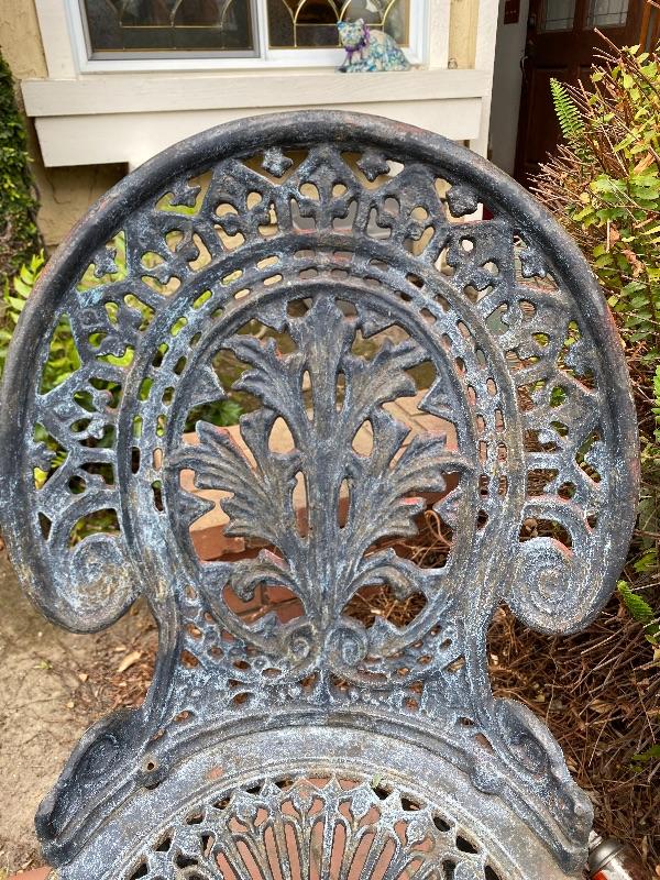 Heavy cast iron bistro style chair. Great patina from being outside. #24-50026