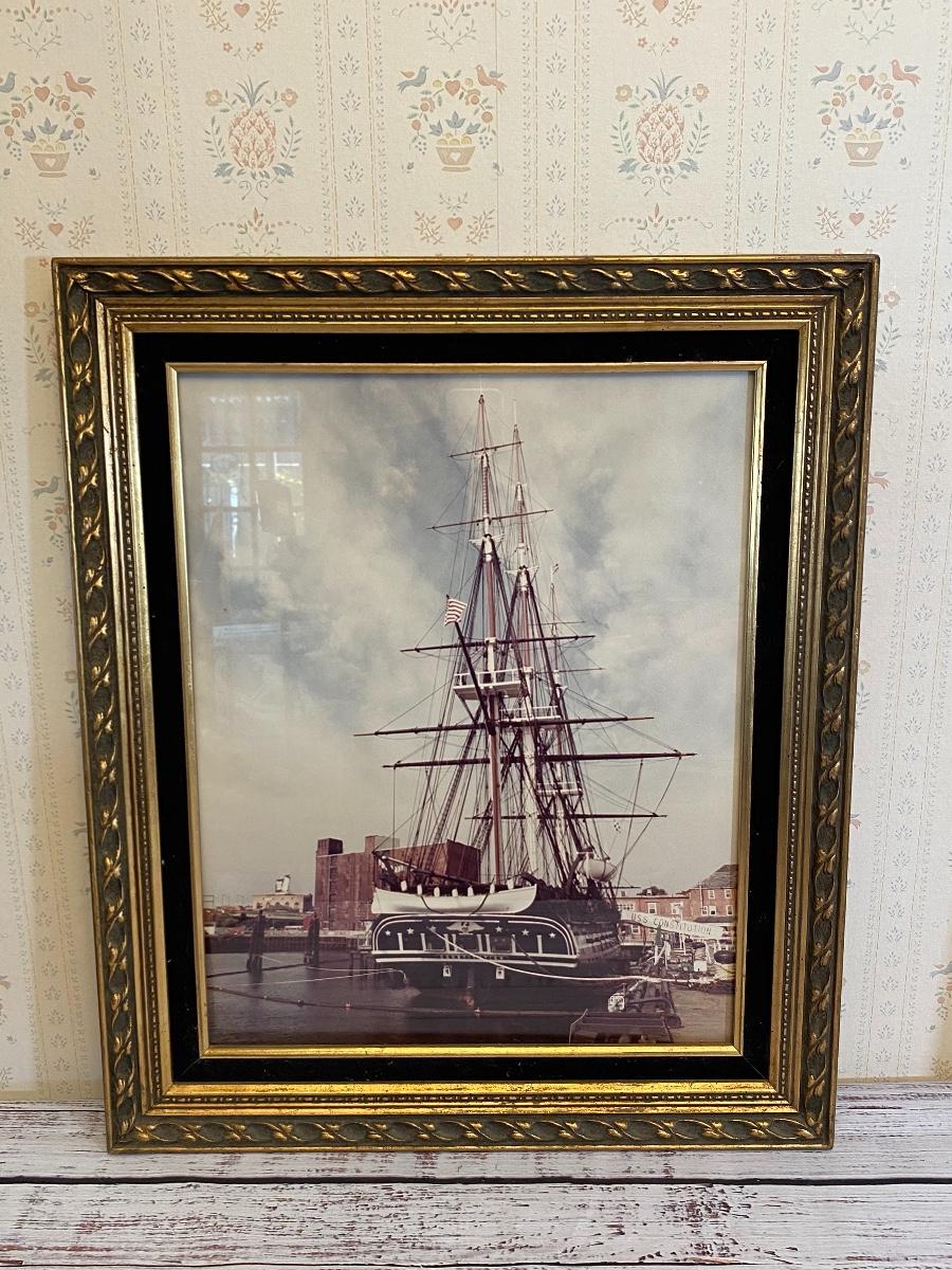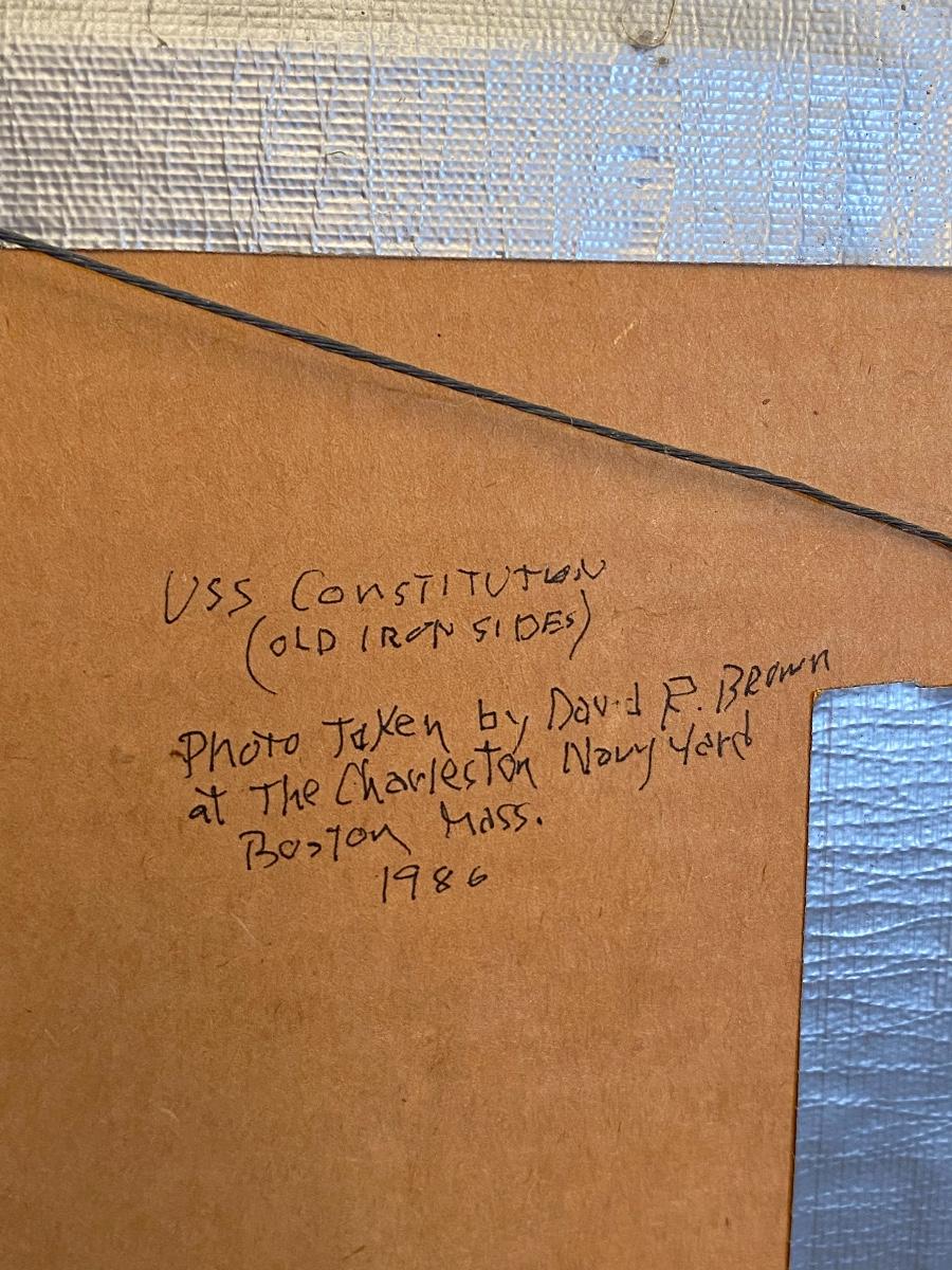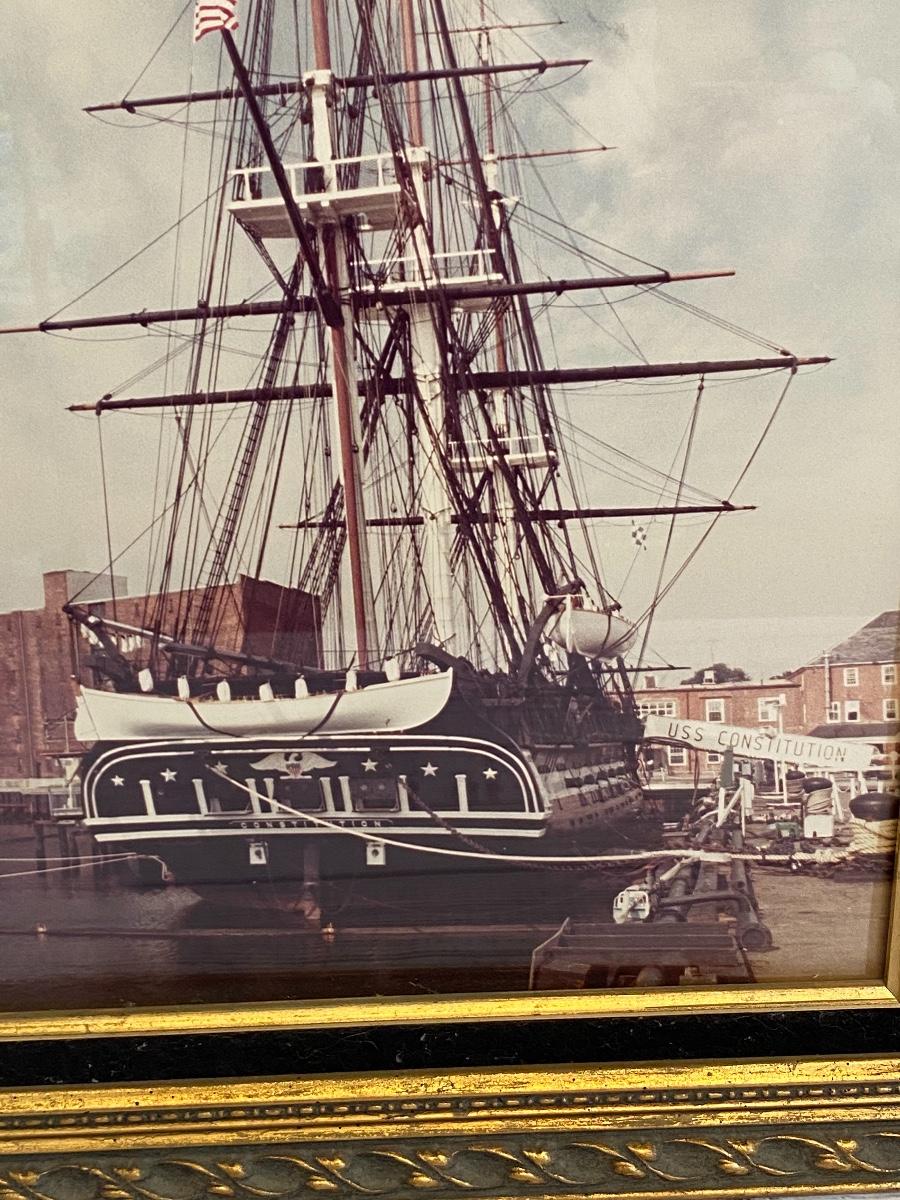 21x26 framed photo of the USS Constitution "Old Ironsides" in Boston MA 1986. Photo taken by previous owner.