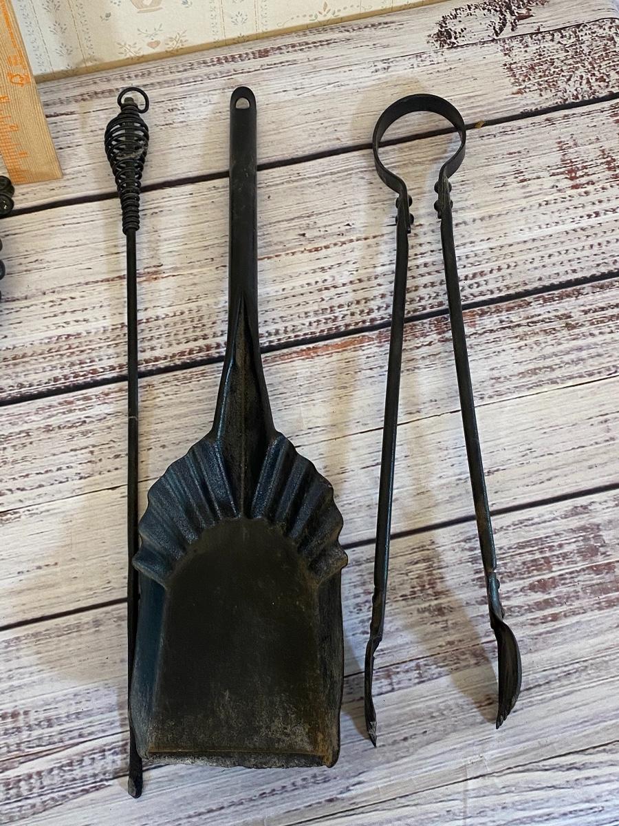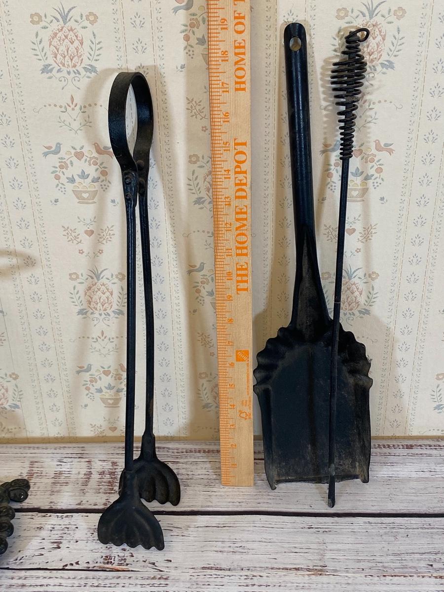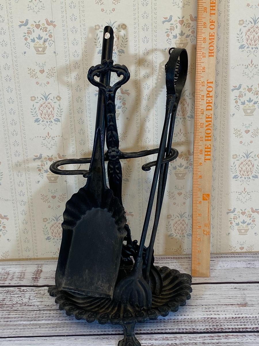 Vintage fireplace tool set. Smaller size, about 18" tall. Good condition. #030-2017