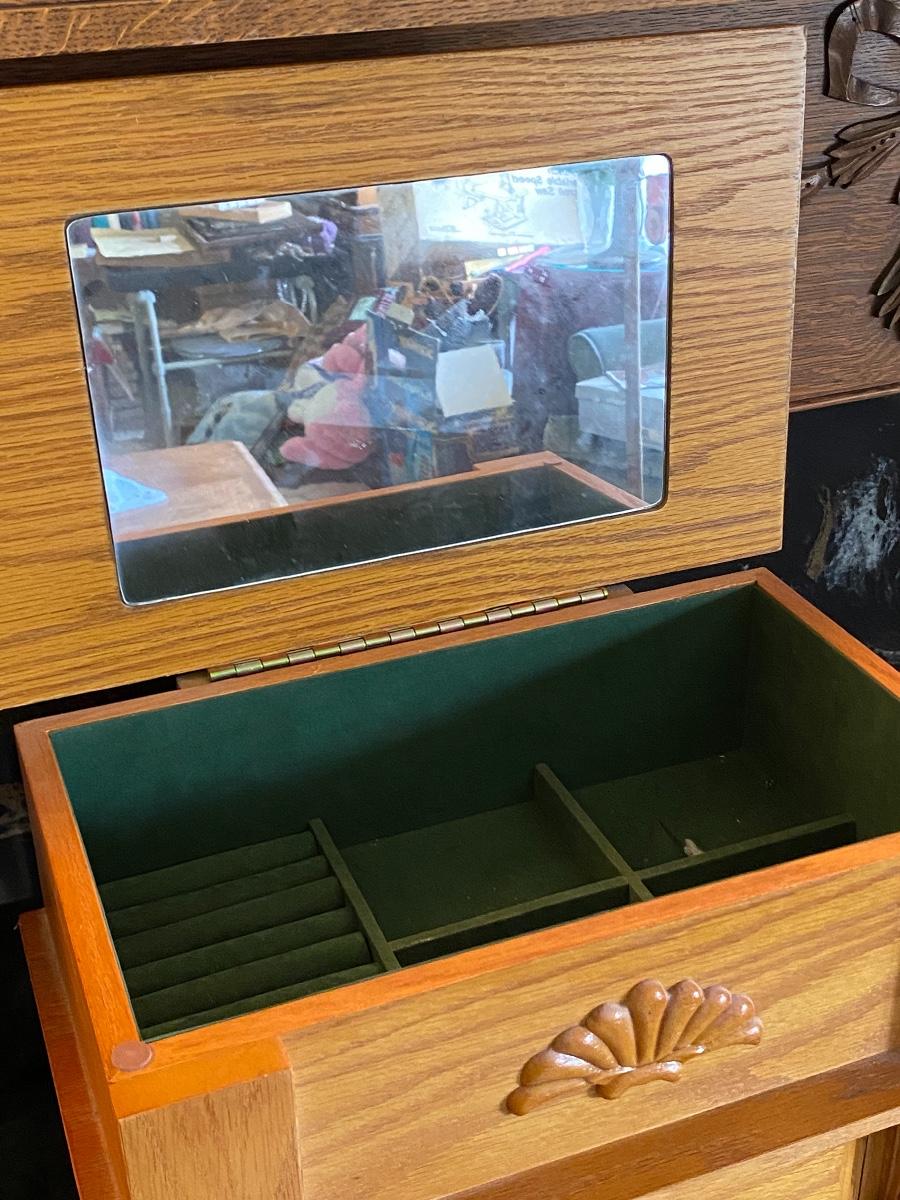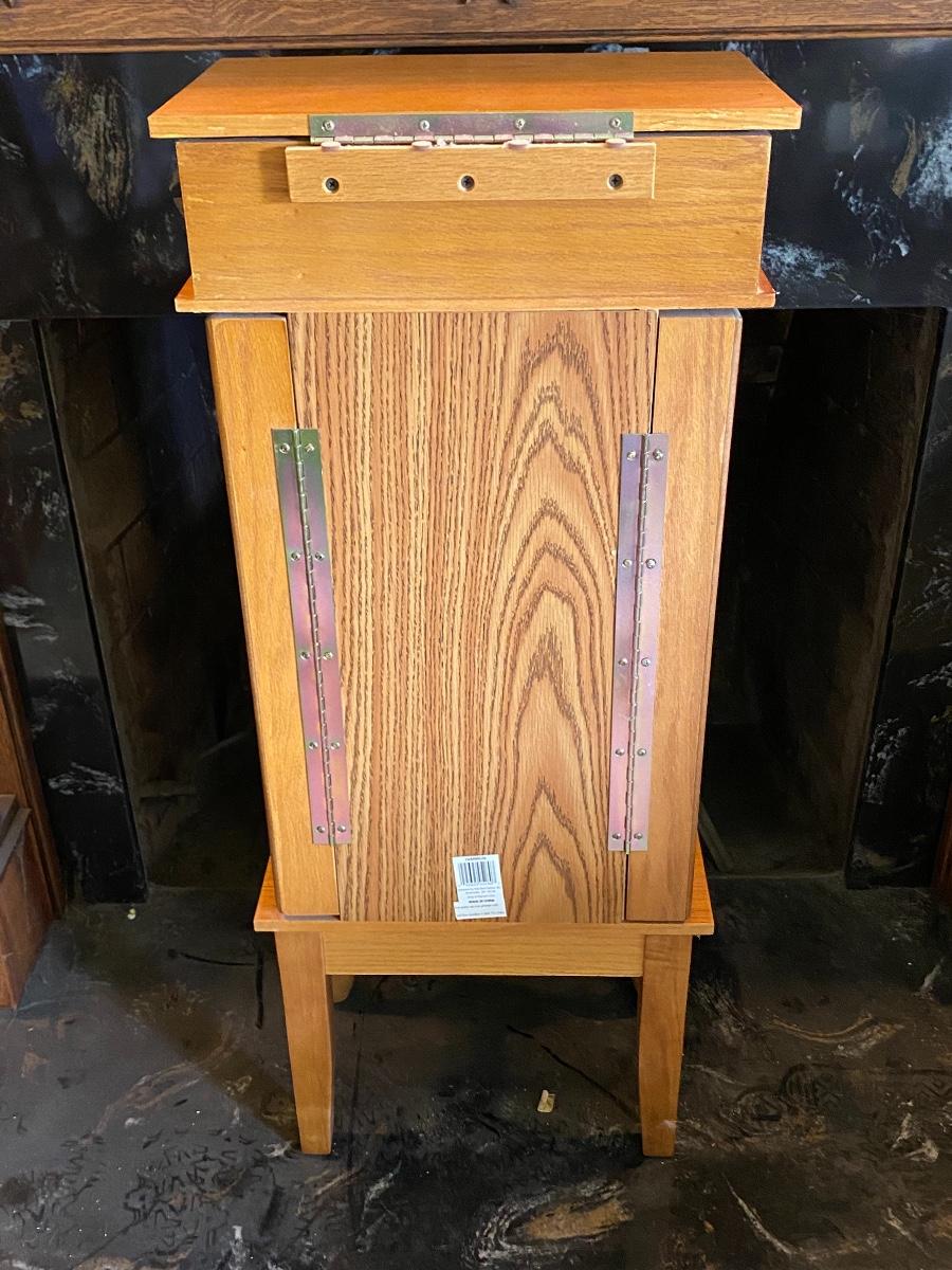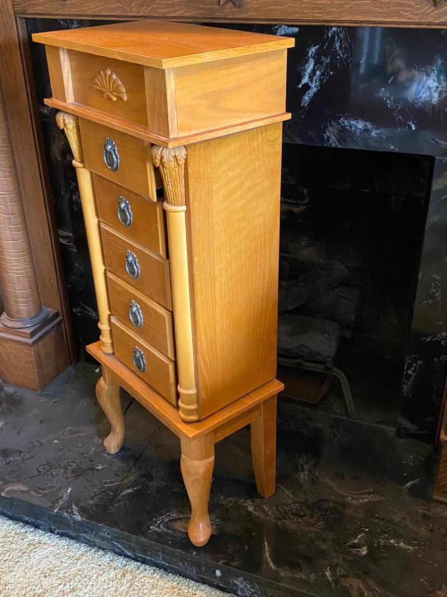 Country Blonde Oak Jewelry Armoire, Cabriolet Legs, Drawers, Side Panels swing out