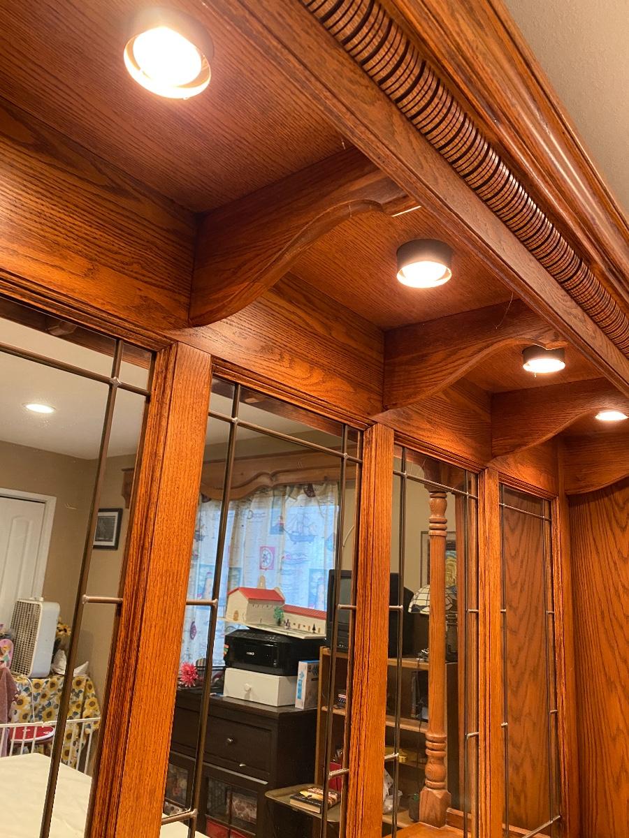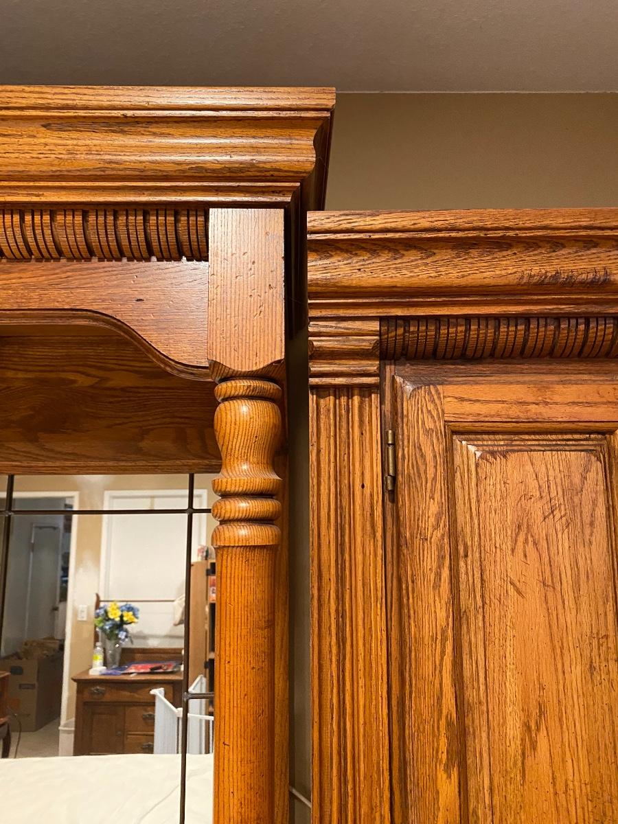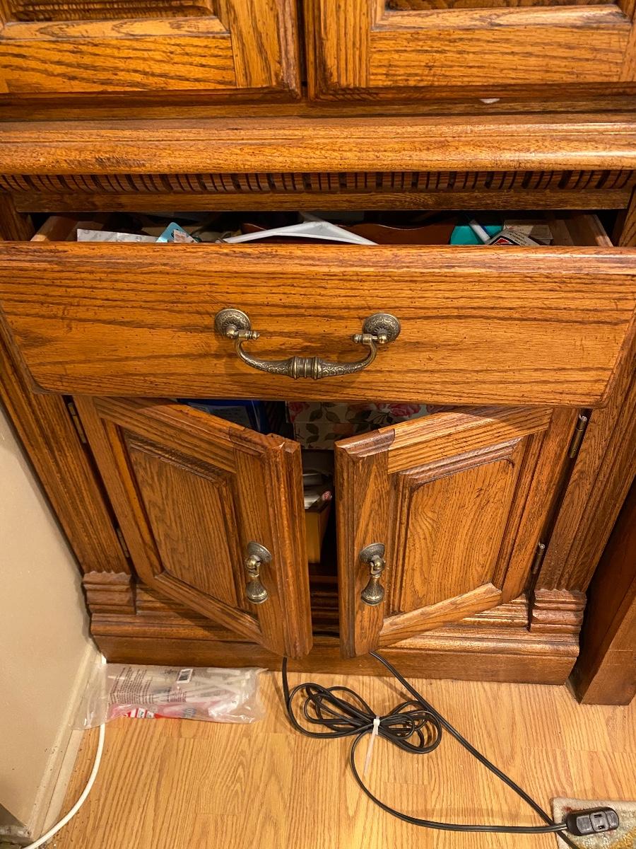Full Double size Bedroom Set, Oak wall unit, lighted, cupboards and drawers