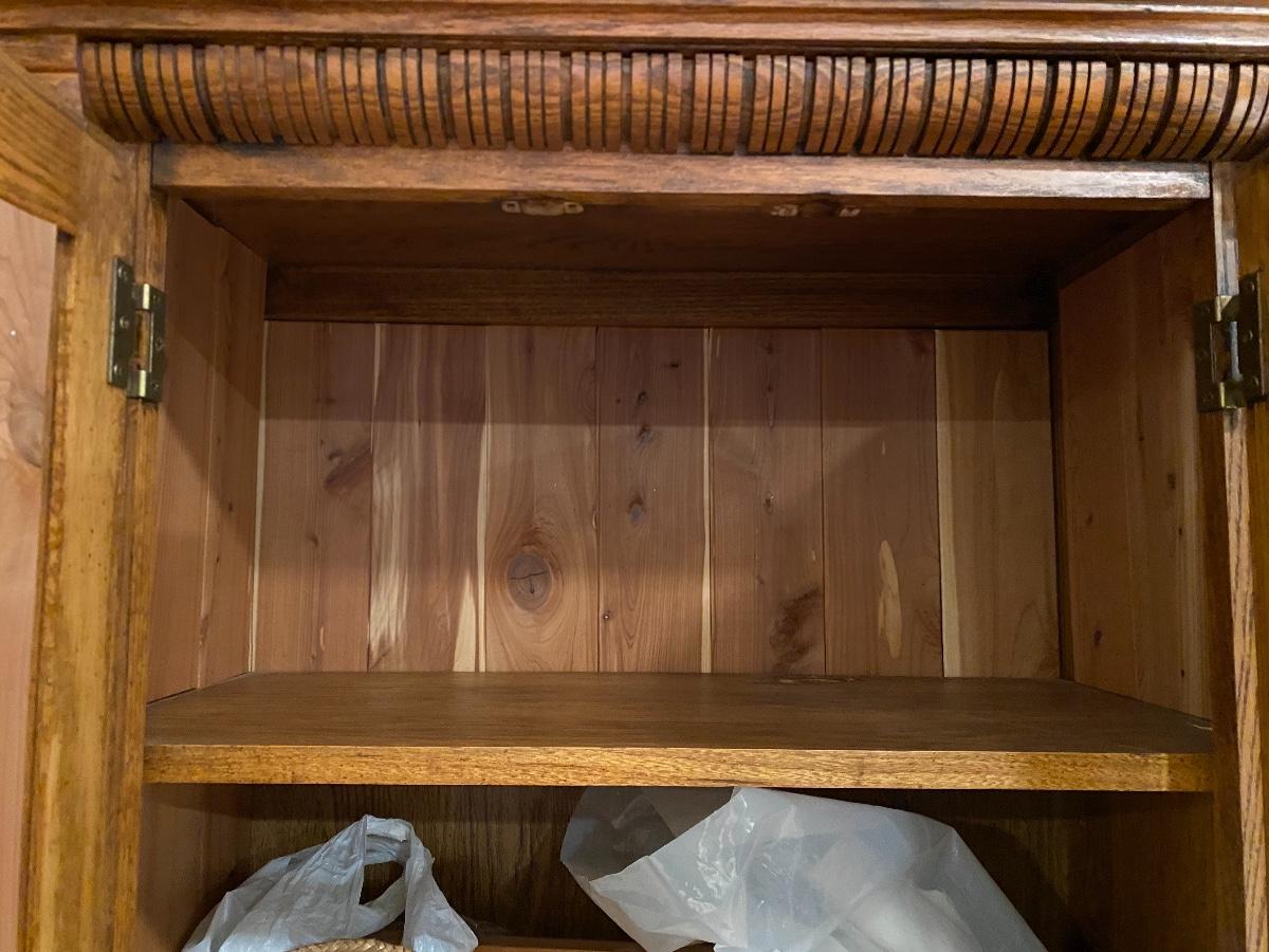 In good condition, see photos, Side cabinets are not attached , could be used in different room.