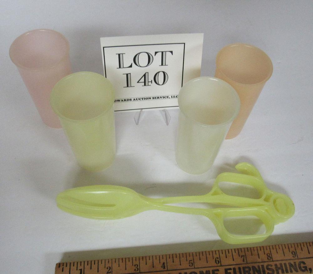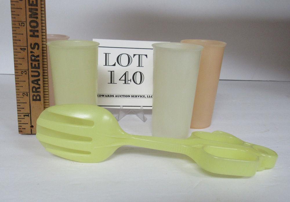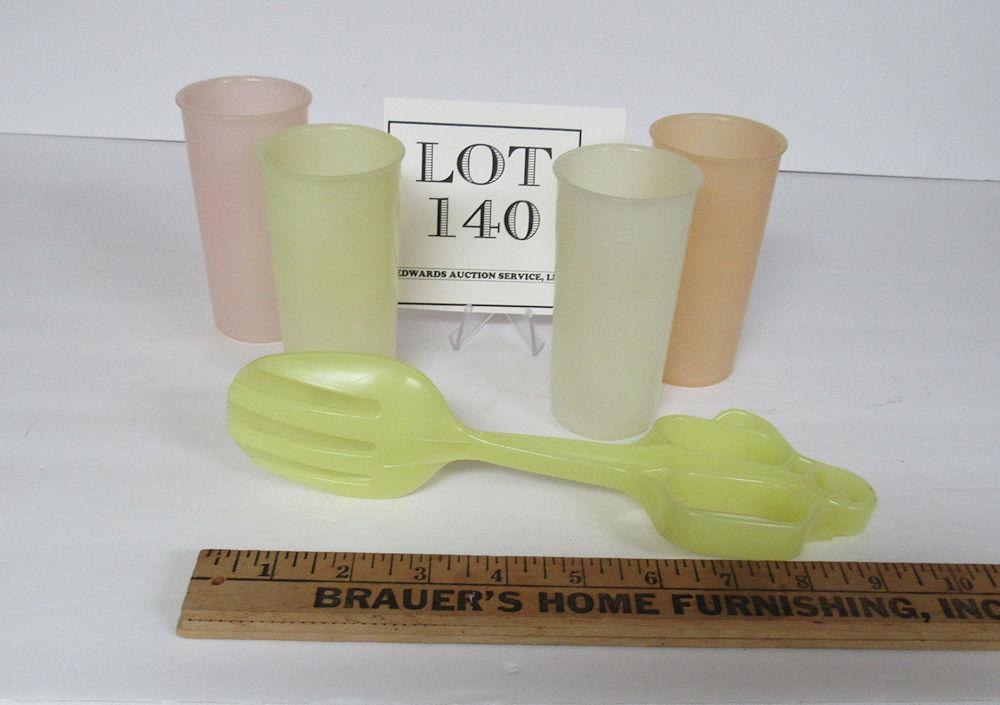 4 Tupperware 4" Tumblers and Tupperware Salad Tongs