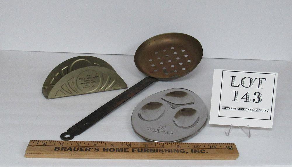 Copper Strainer, Advertising Spoon Rest Tin Advertising Napkin Holder