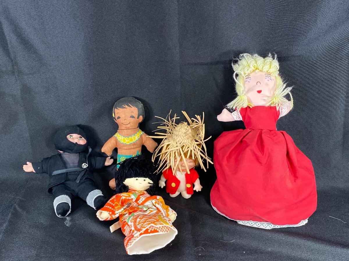 Mixed lot of dolls. All different from the other. Under 12" size. They are dusty from years of display.