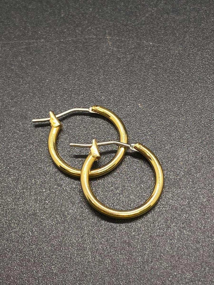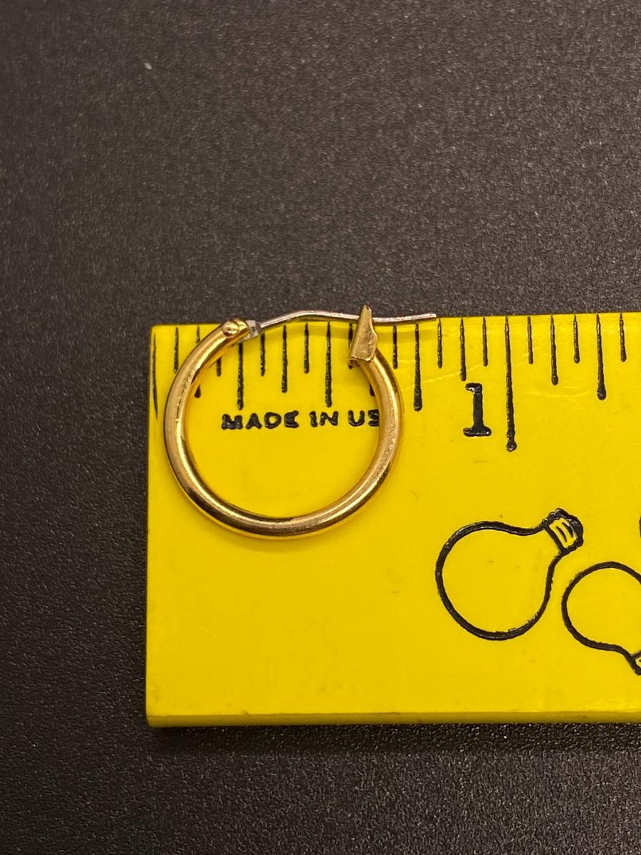 Goldtone 3/4" hoop earrings, preowned good condition. No marks or stamps.