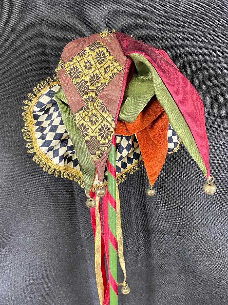 Wayne Kleski for Katherine's Collection Smiling Jester stick puppet. Happy face jester. Good condition. About 20" total length.