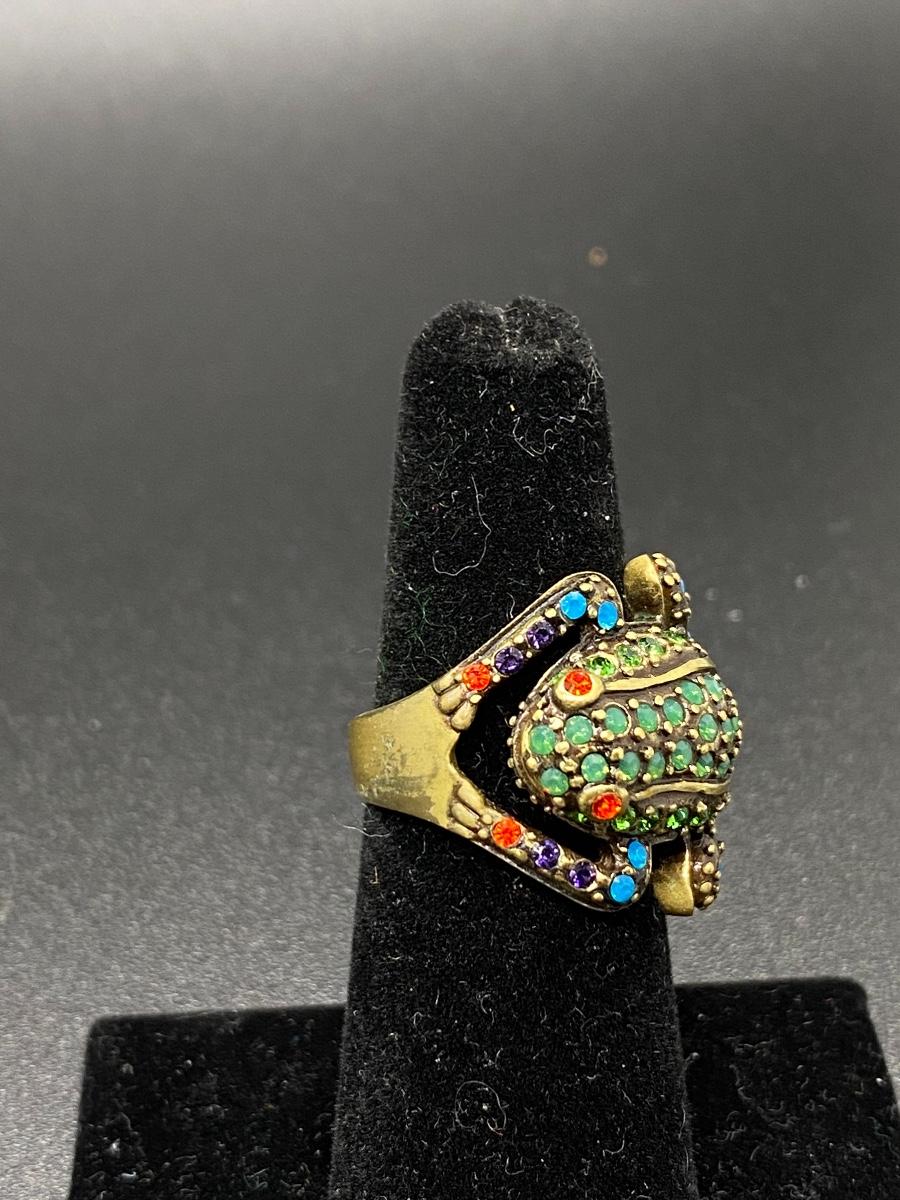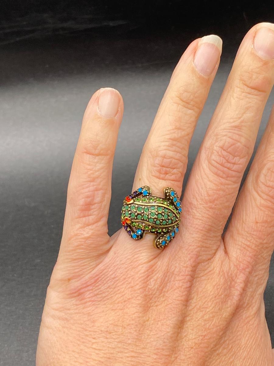 Colorful rhinestone frog ring from Heidi Daus. Great condition, no missing stones. Fits like a 6.5.