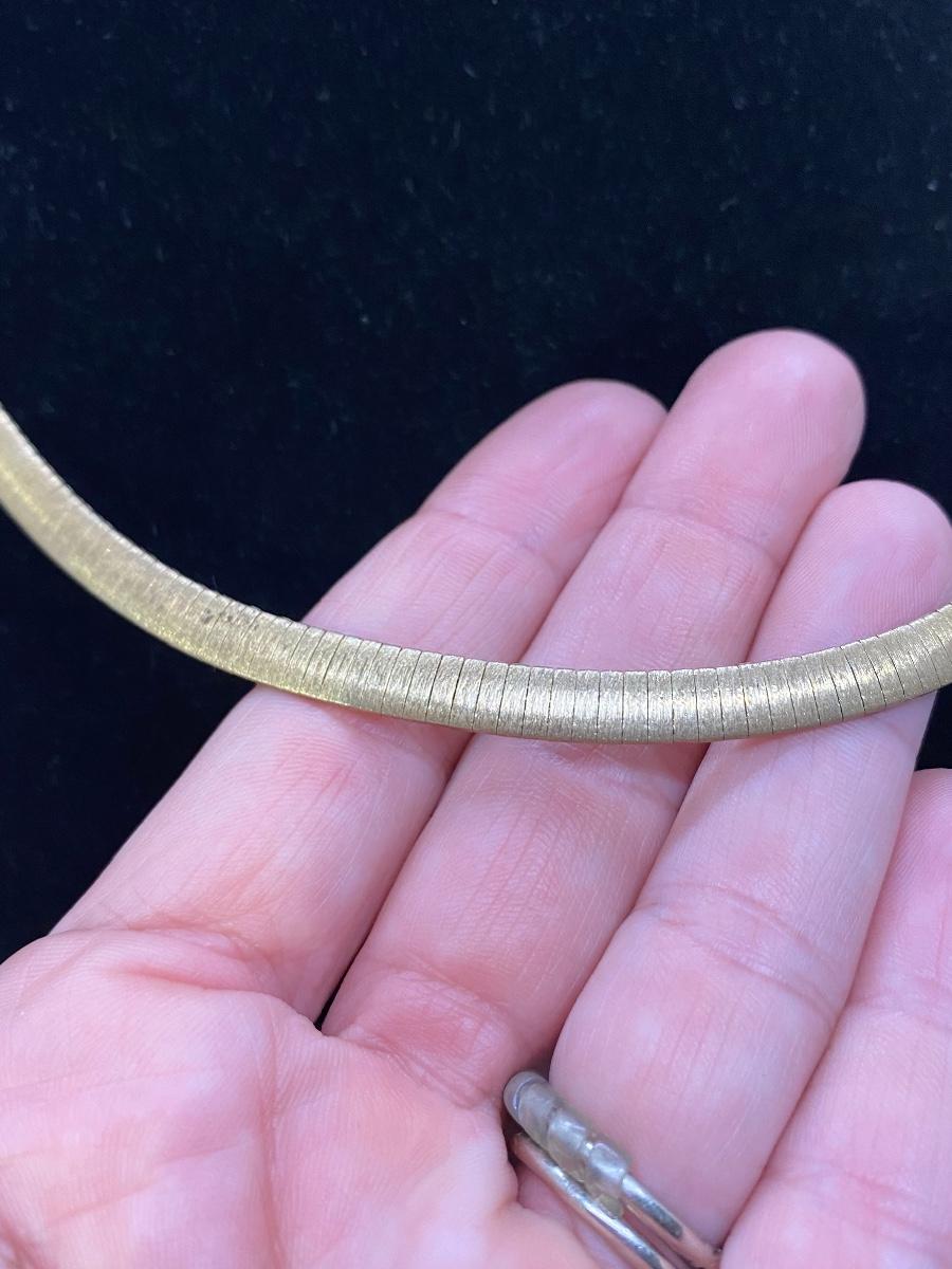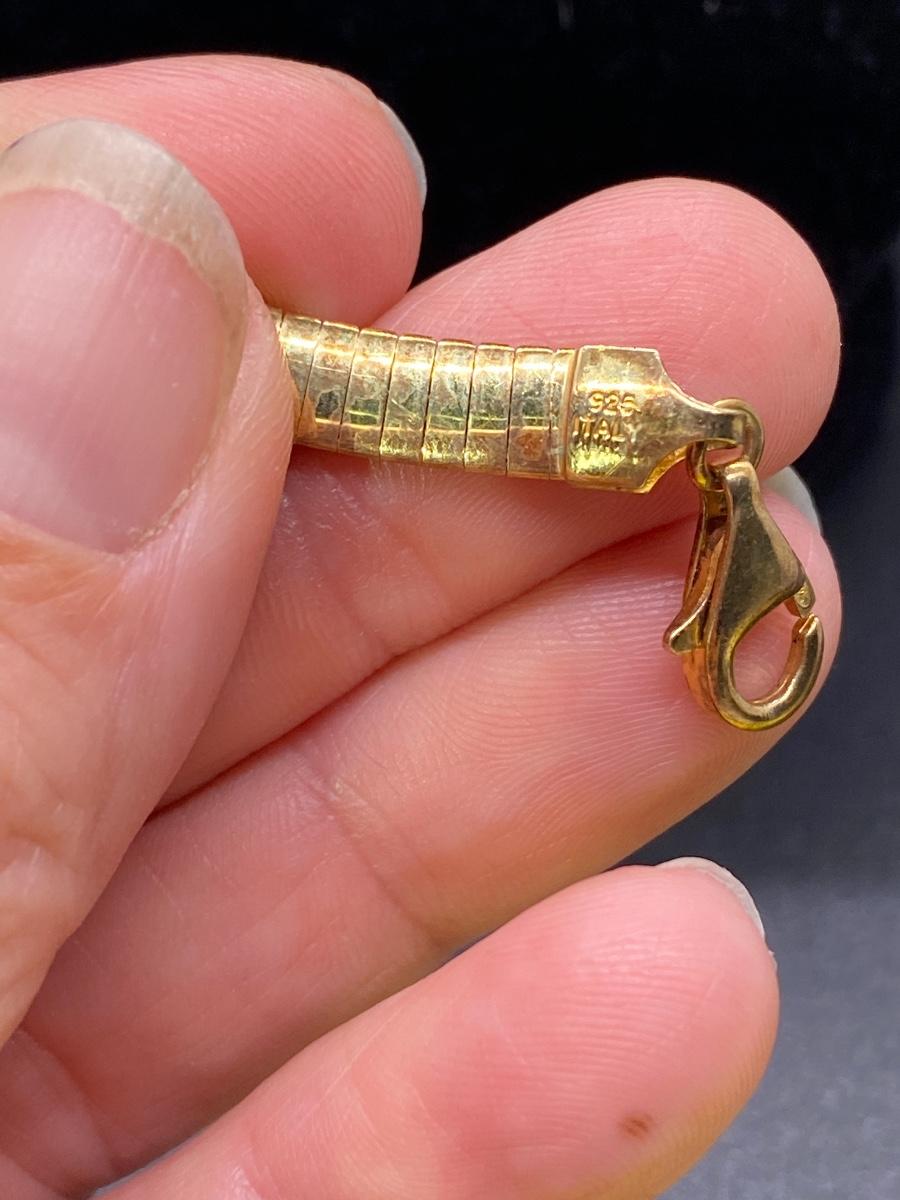 Gold finish sterling silver necklace. Nice flat link chain. Marked on clasp ends.
