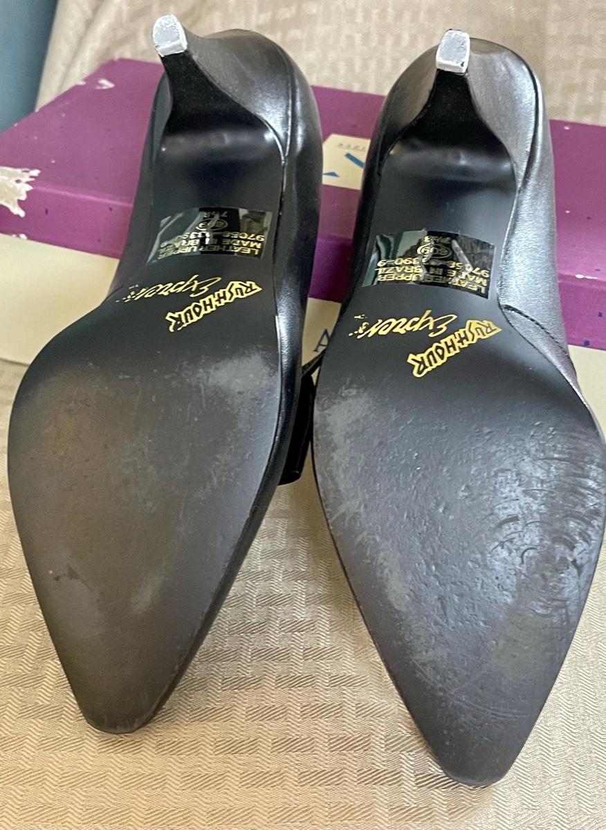 Pair of retro black leather pumps from Rushhour Express. In good lightly used condition. Size 7.5. Not original box.