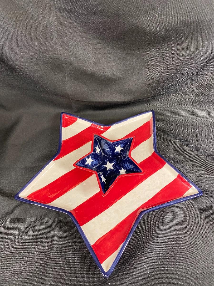 Red White and Blue Star Shaped Platter and Dip Bowl