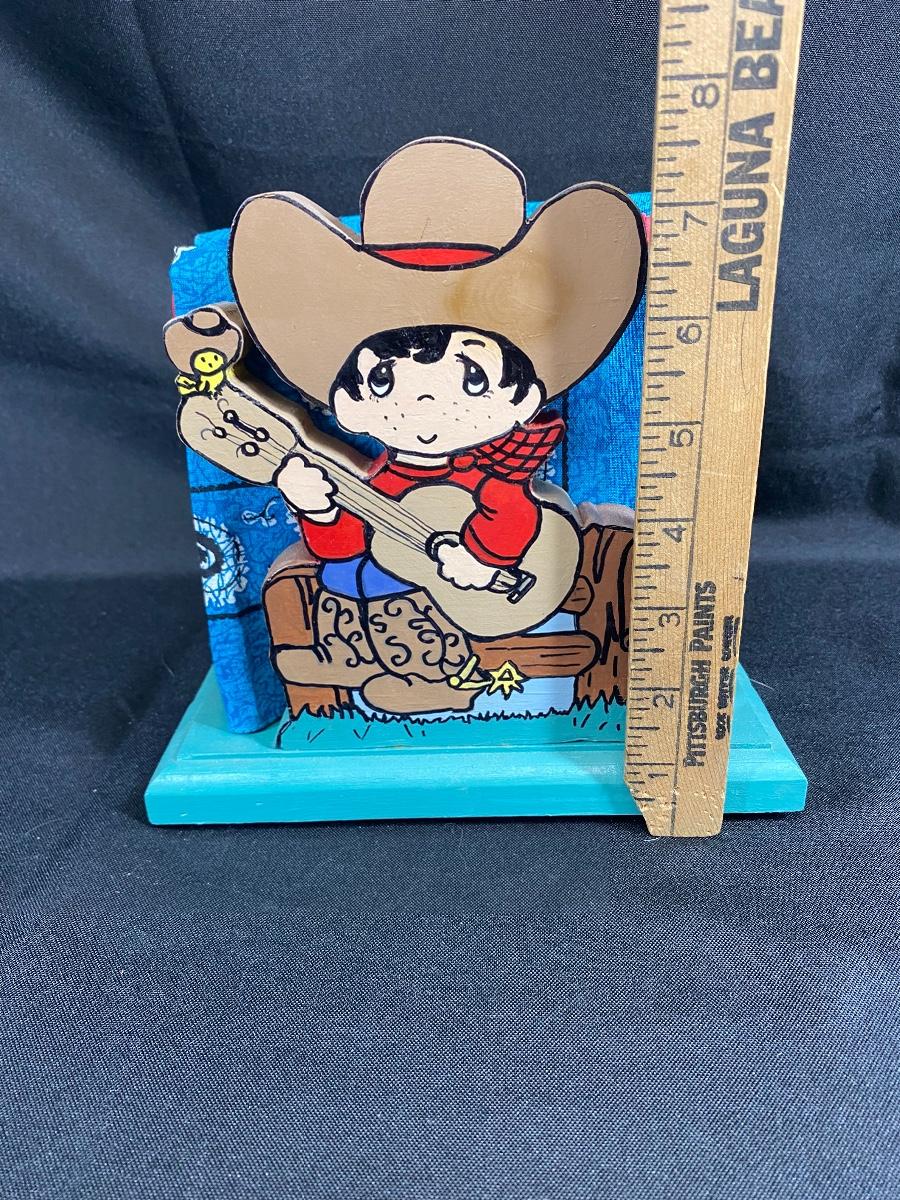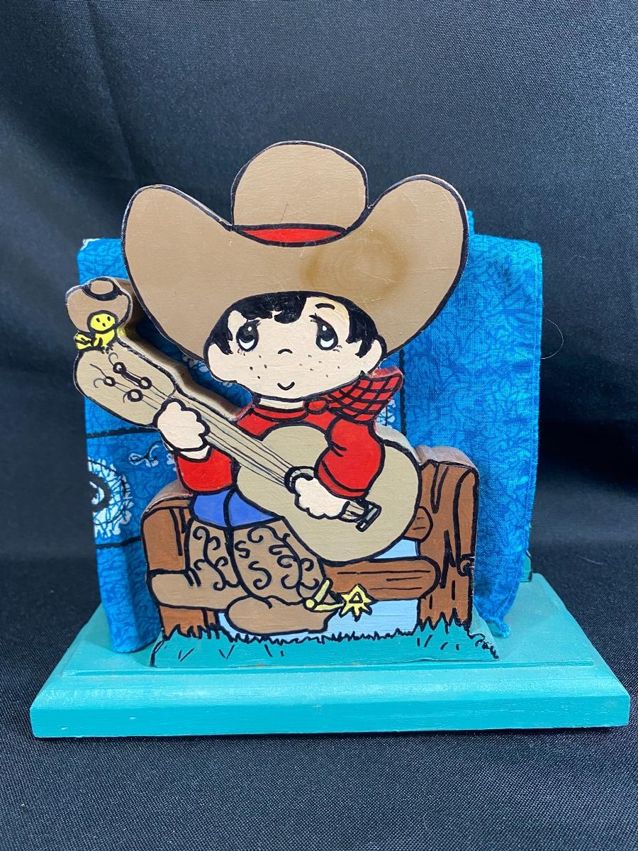 Precious Moments Style Cowboy Painted Napkin Holder with Bandanas