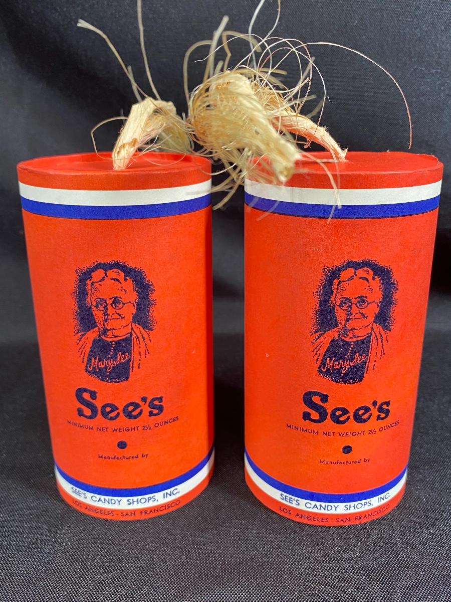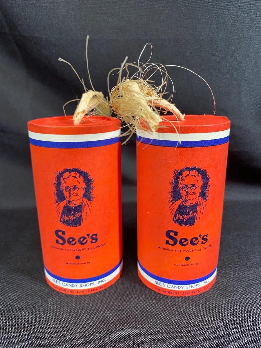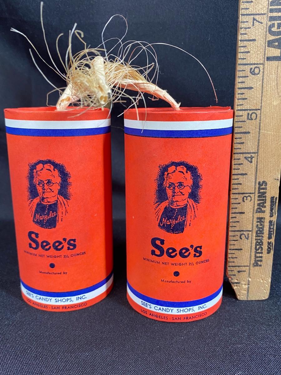 Pair of vintage firecracker style candy boxes from See's Candy. Great condition, display nicely.