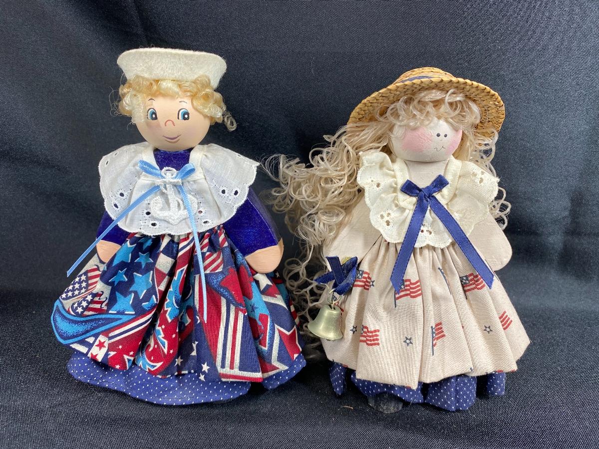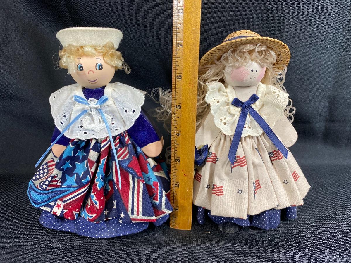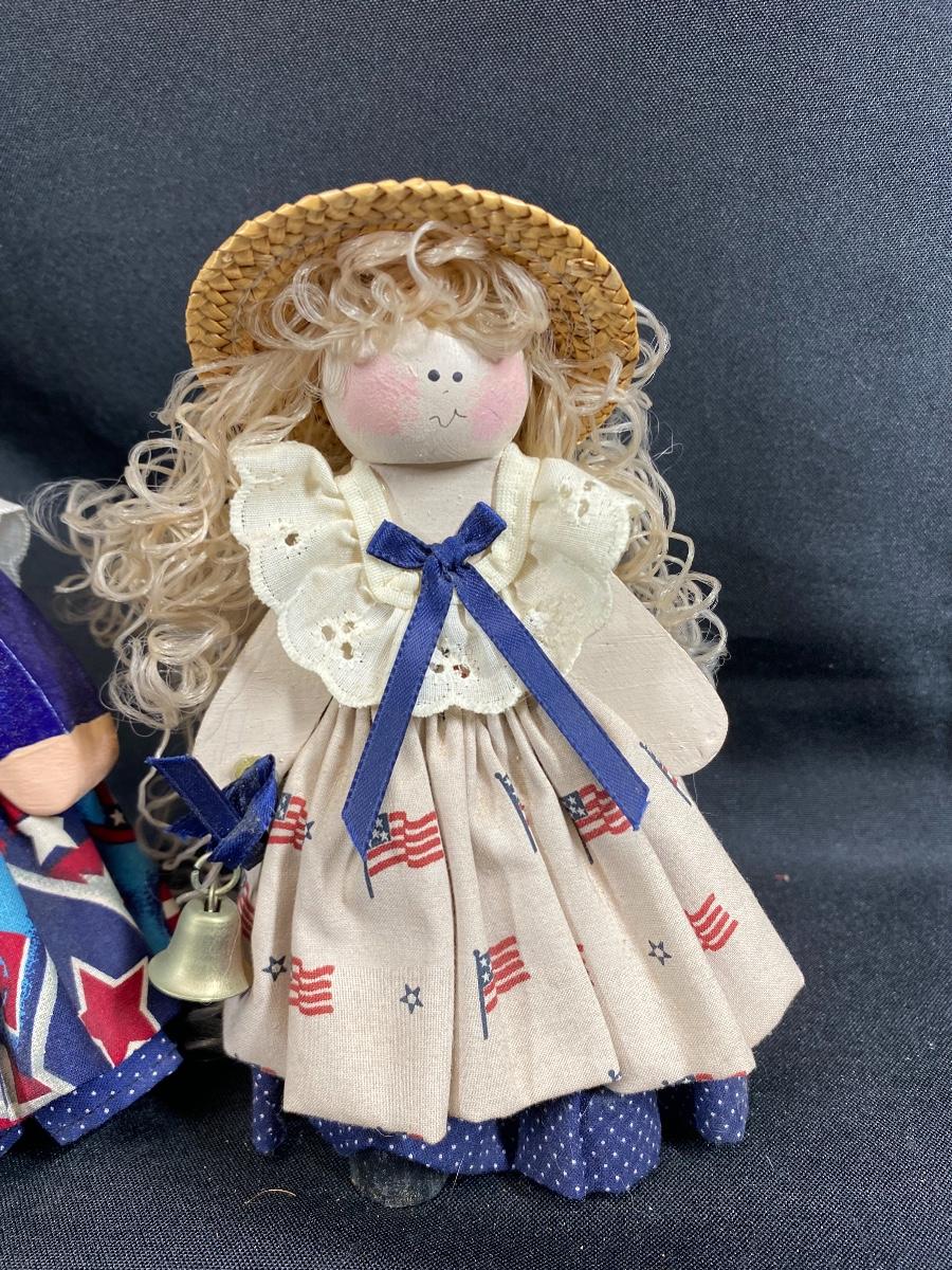 Patriotic wooden doll figurines. Good condition, a little dusty.