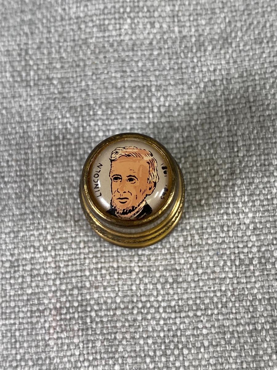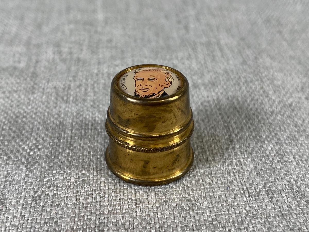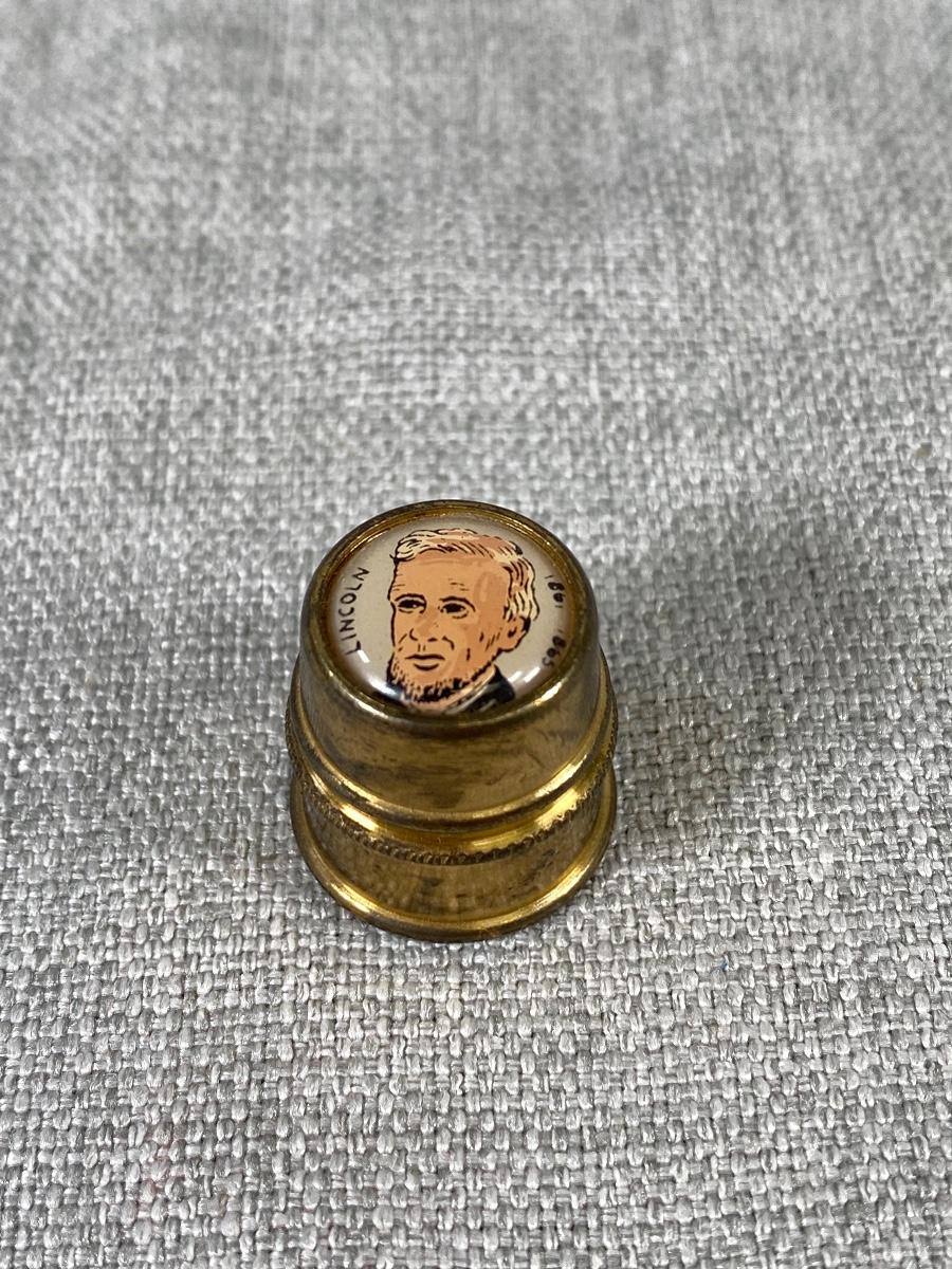Vintage brass Abraham Lincoln thimble. Age unknown. Made in Holland.