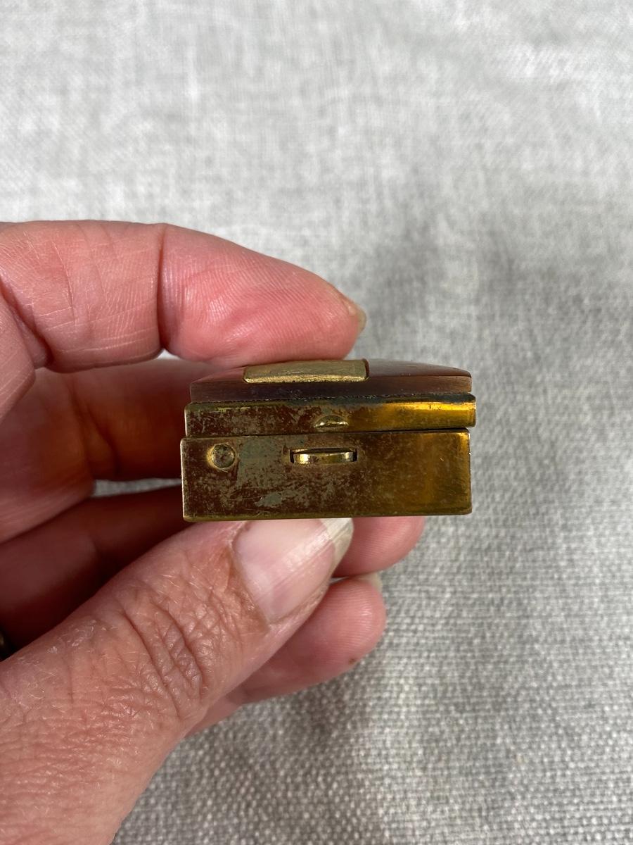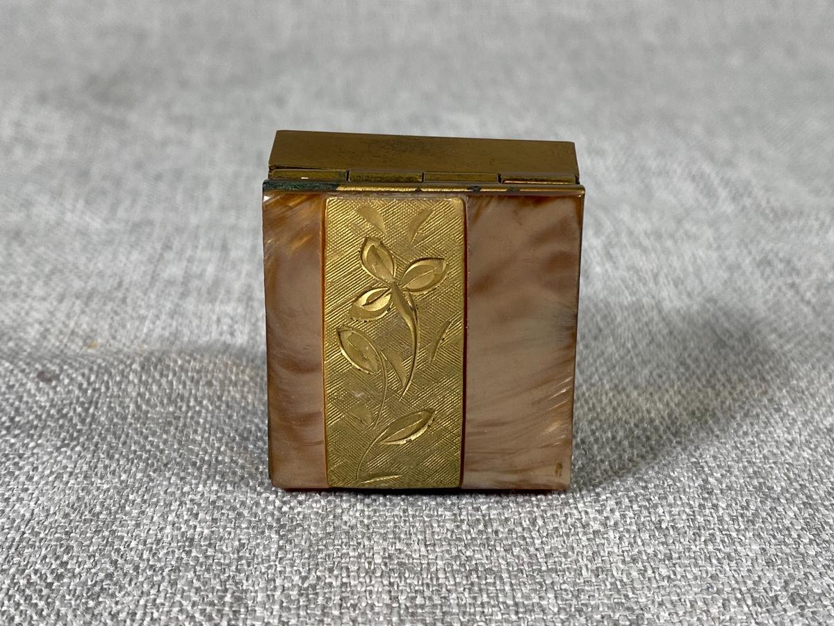 Vintage Gold Tone & Amber Shell Trinket Pill Vitamin Box