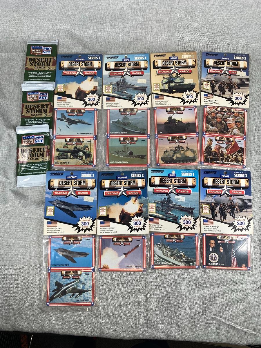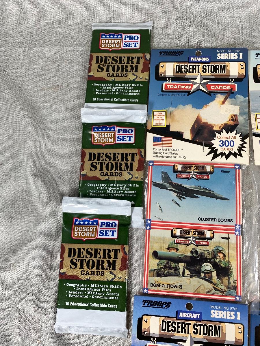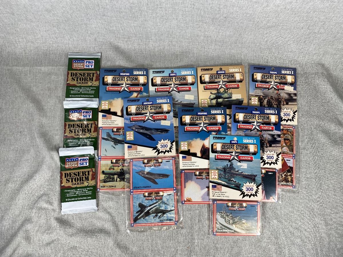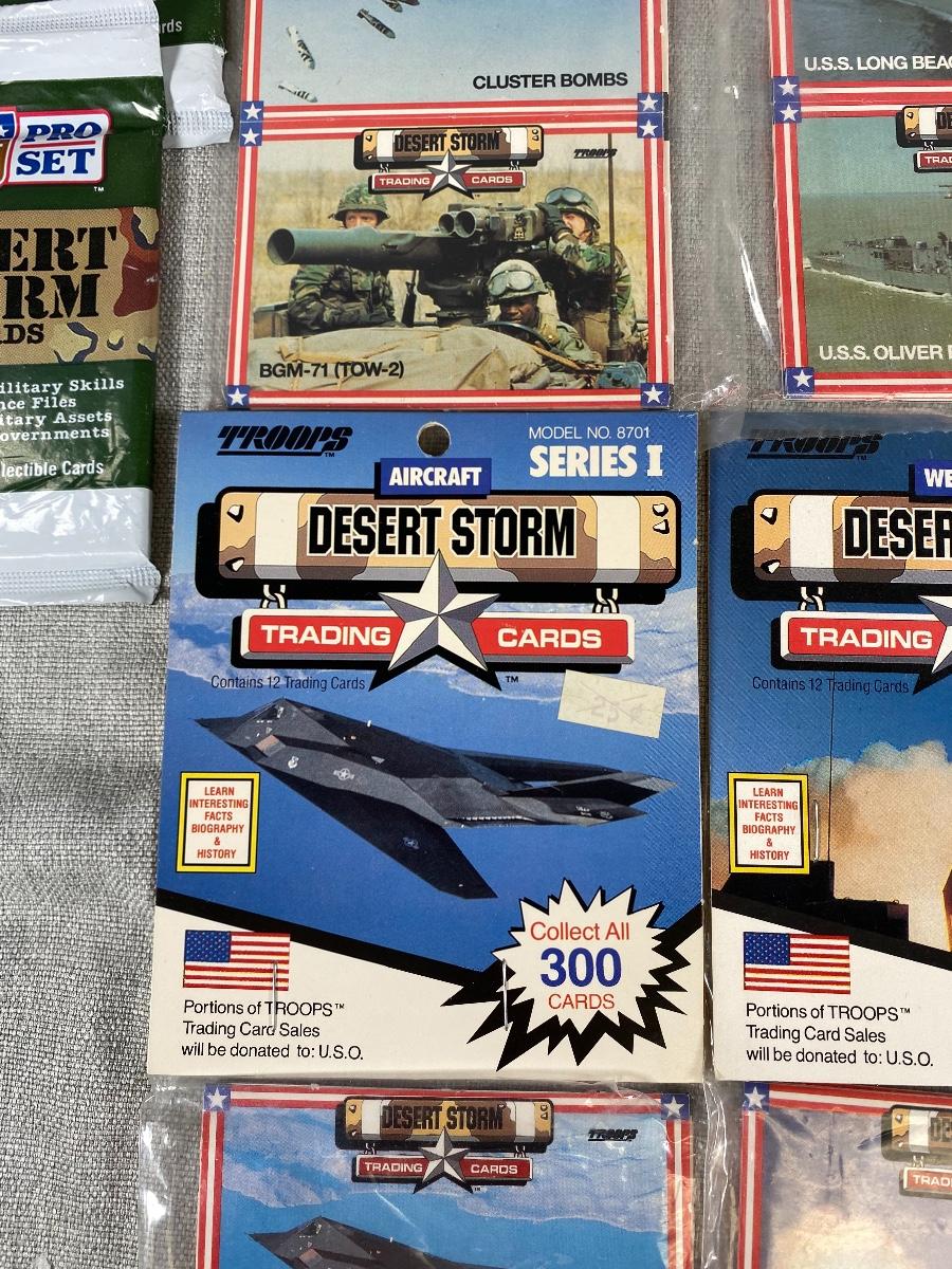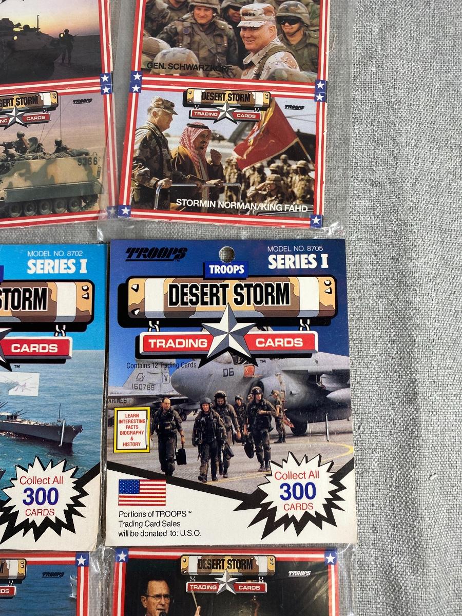 Unopened Desert Storm collector trading cards. 11 packs total, They packs have a couple different themes amongst them.
