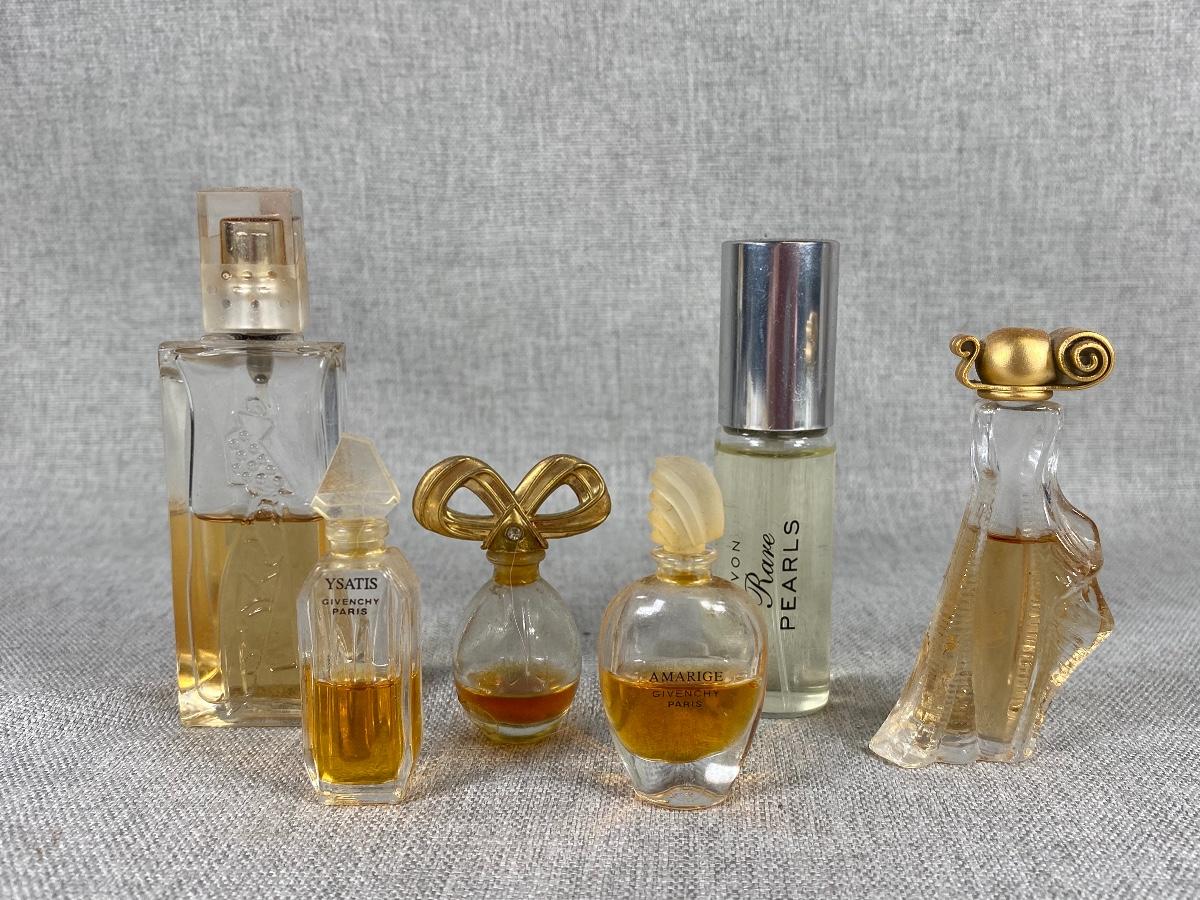 Collection of small and miniature perfume bottles. Most are from Givenchy and one Avon. Various fullness, see photos.