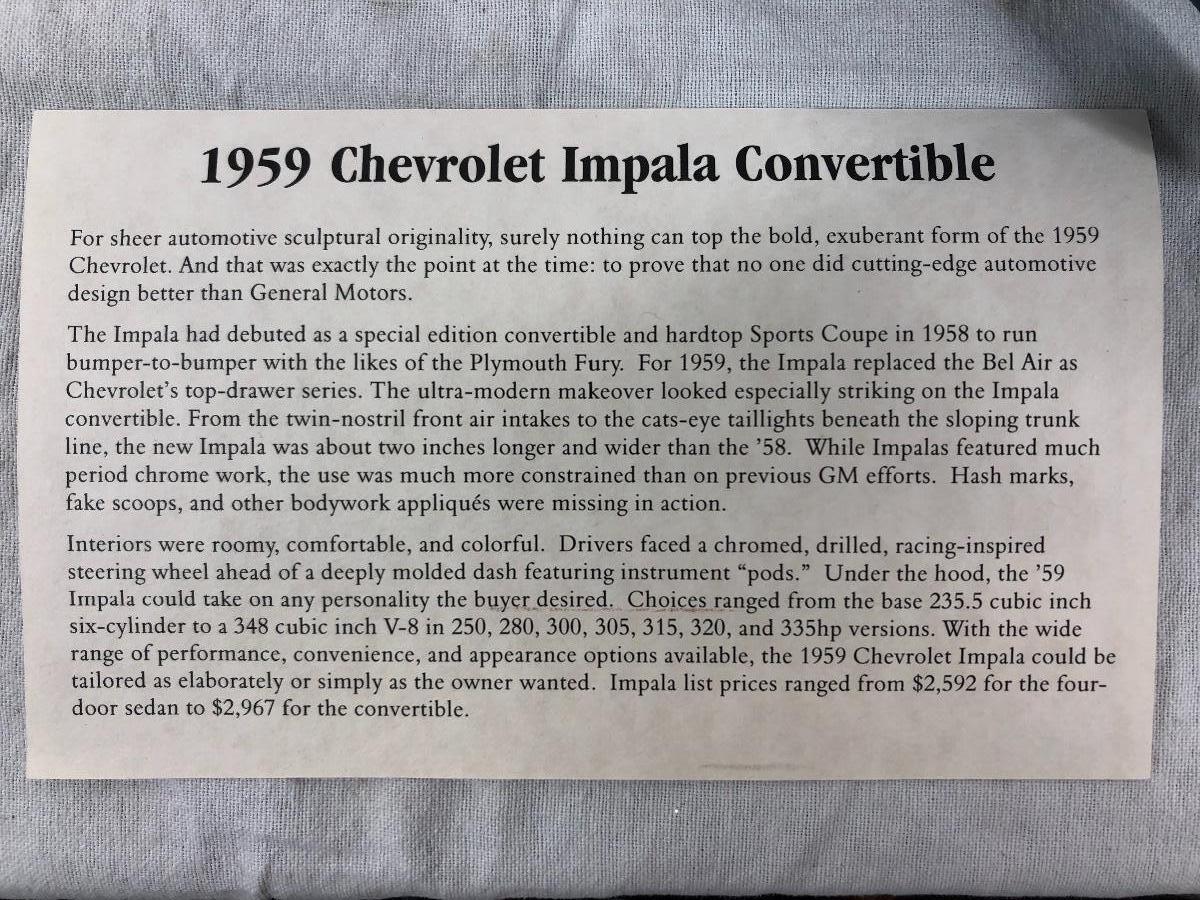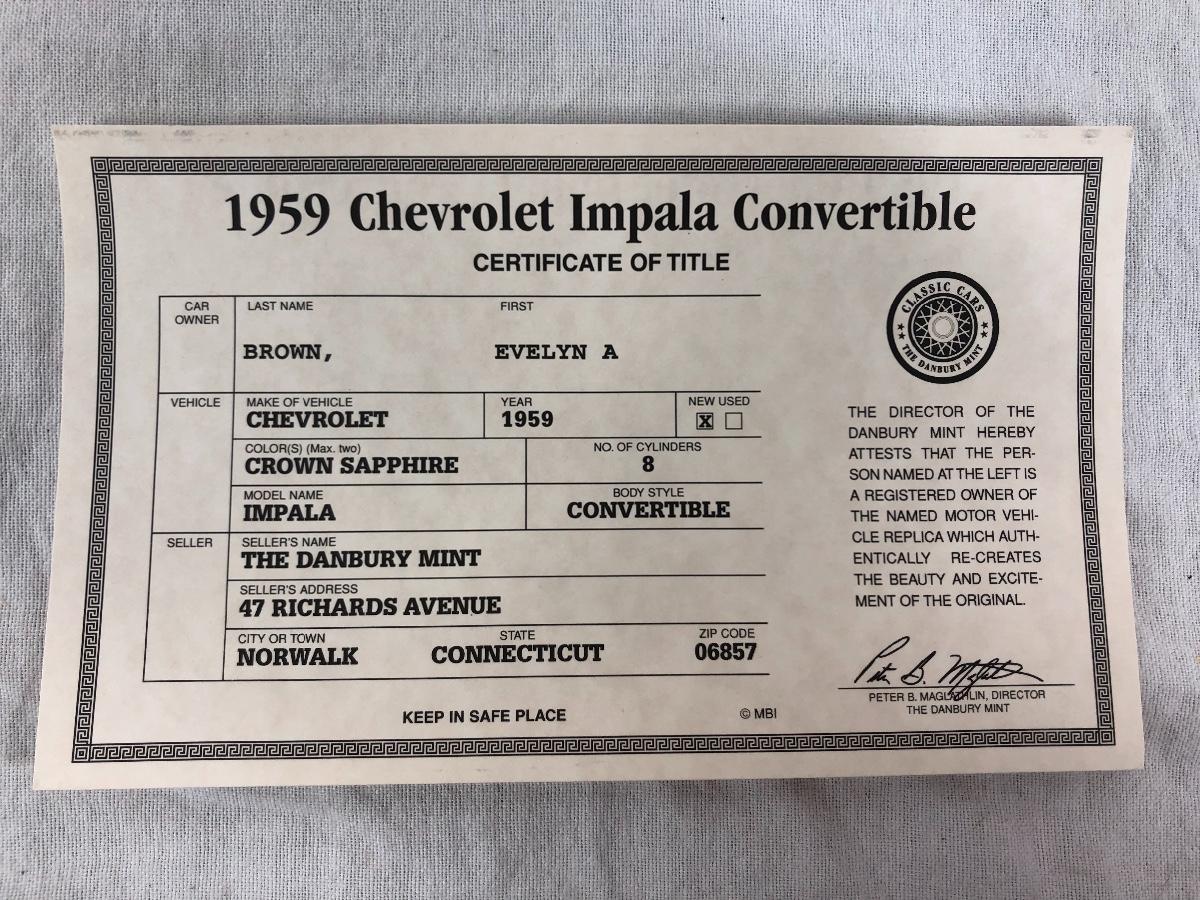 1959 Chevy Impala Die Cast Car Danbury Mint