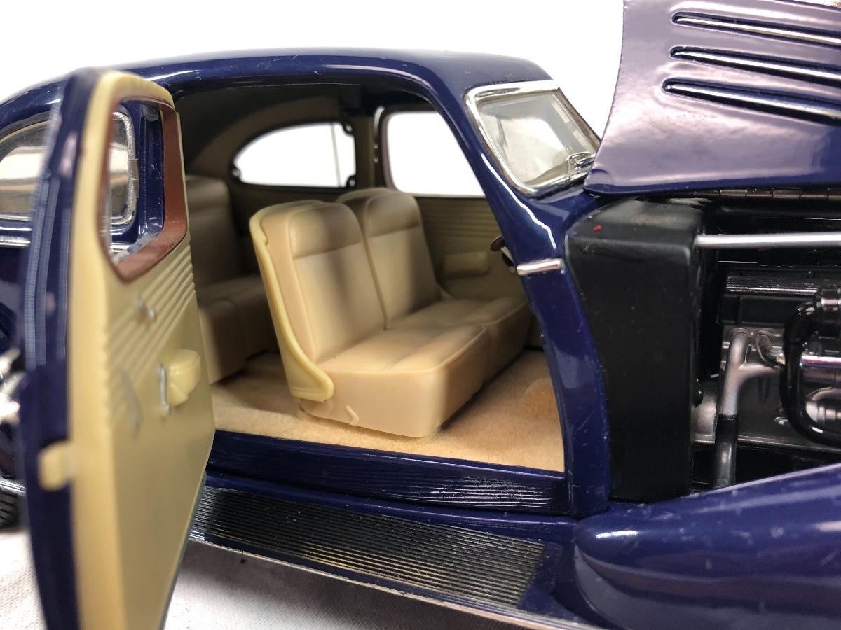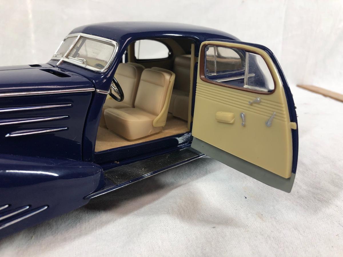 Ricko diecast scale model 1934 Cadillac V16 coupe. Dark blue color. 1:16 scale. Displays great, Doors, hood, and trunk open. About 12" size.