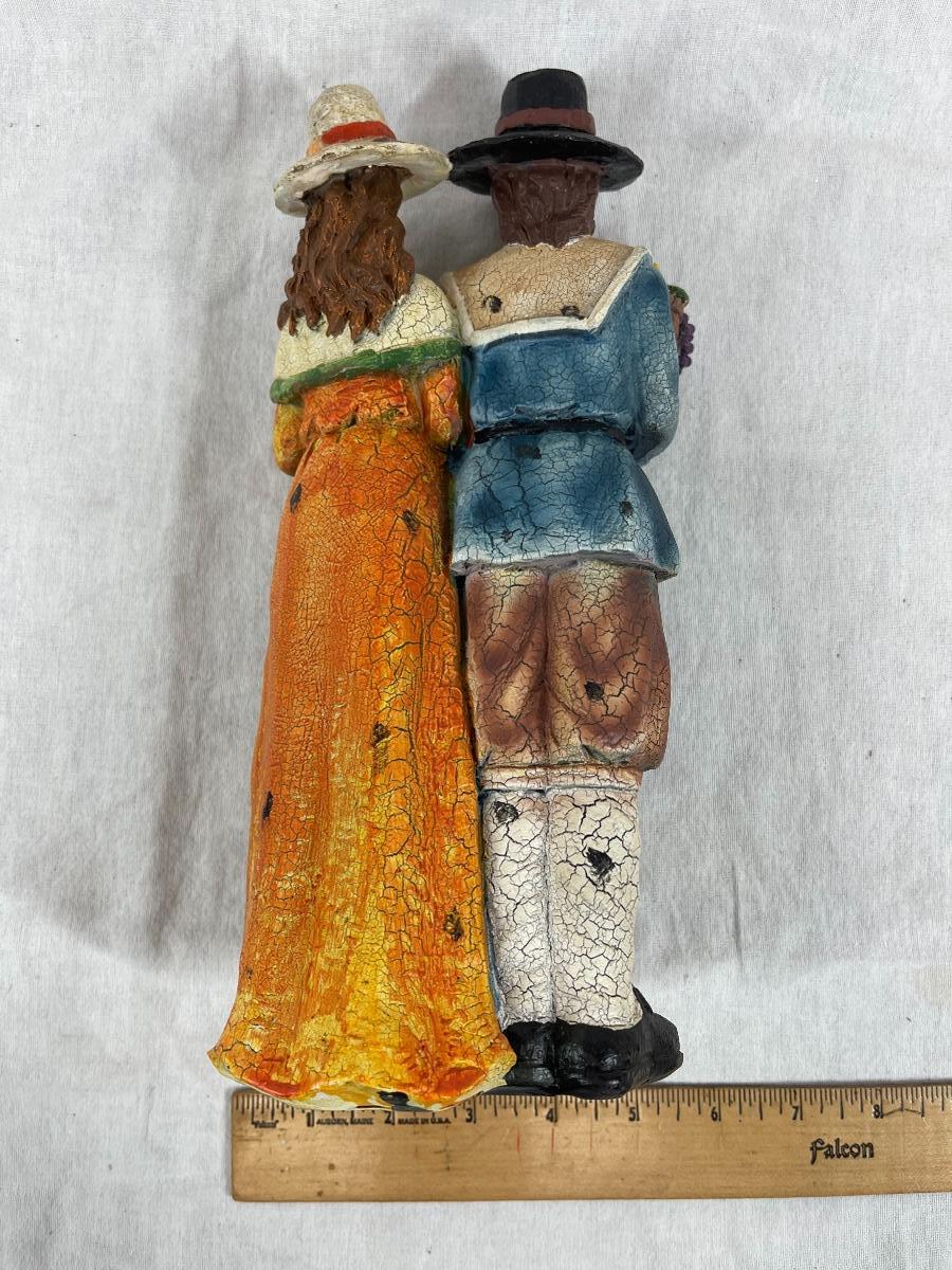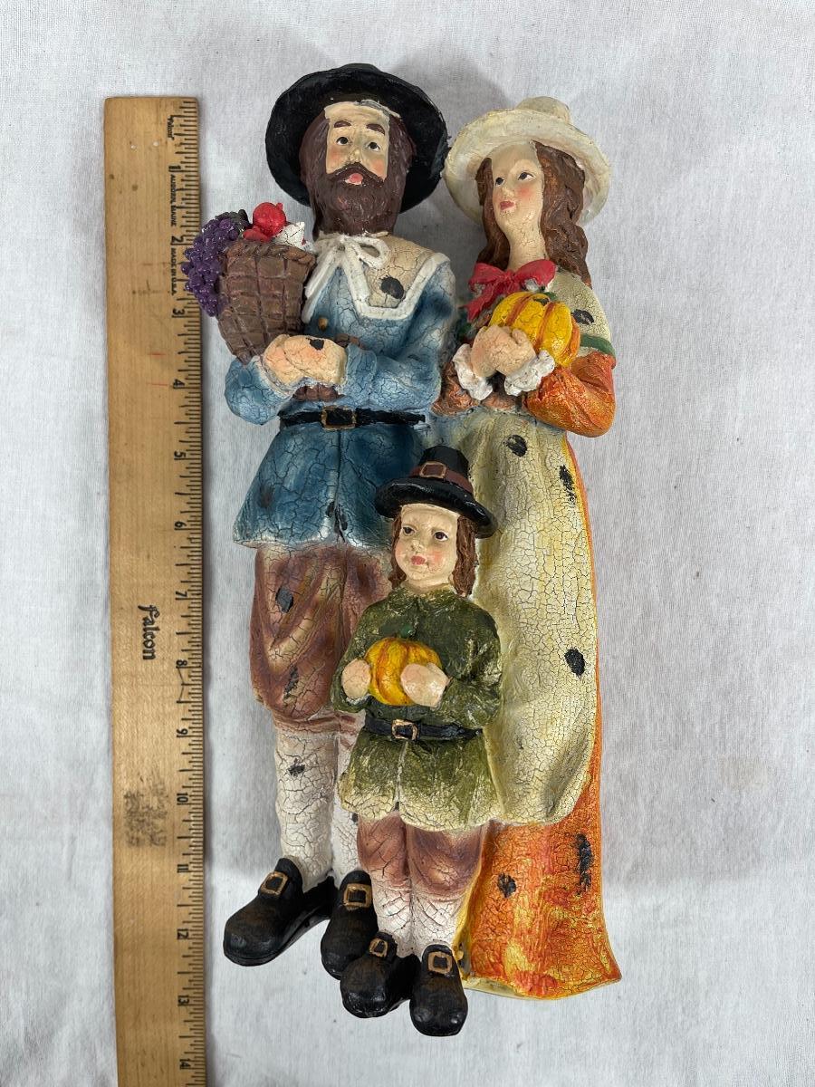 12" Thanksgiving pilgrim figurine. Has a crackle finish.