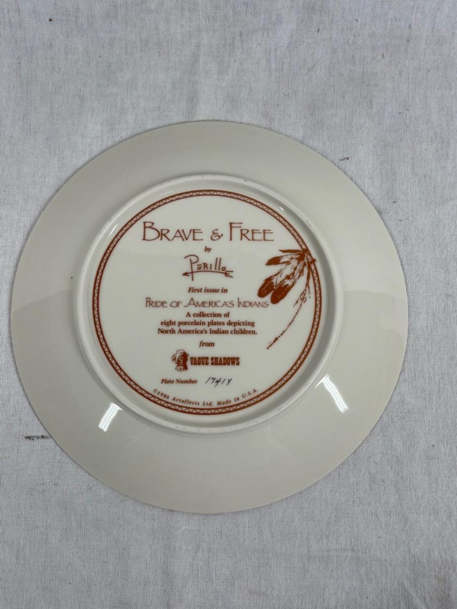 Native American Indian collector plate titled Brave & Free. Good condition.