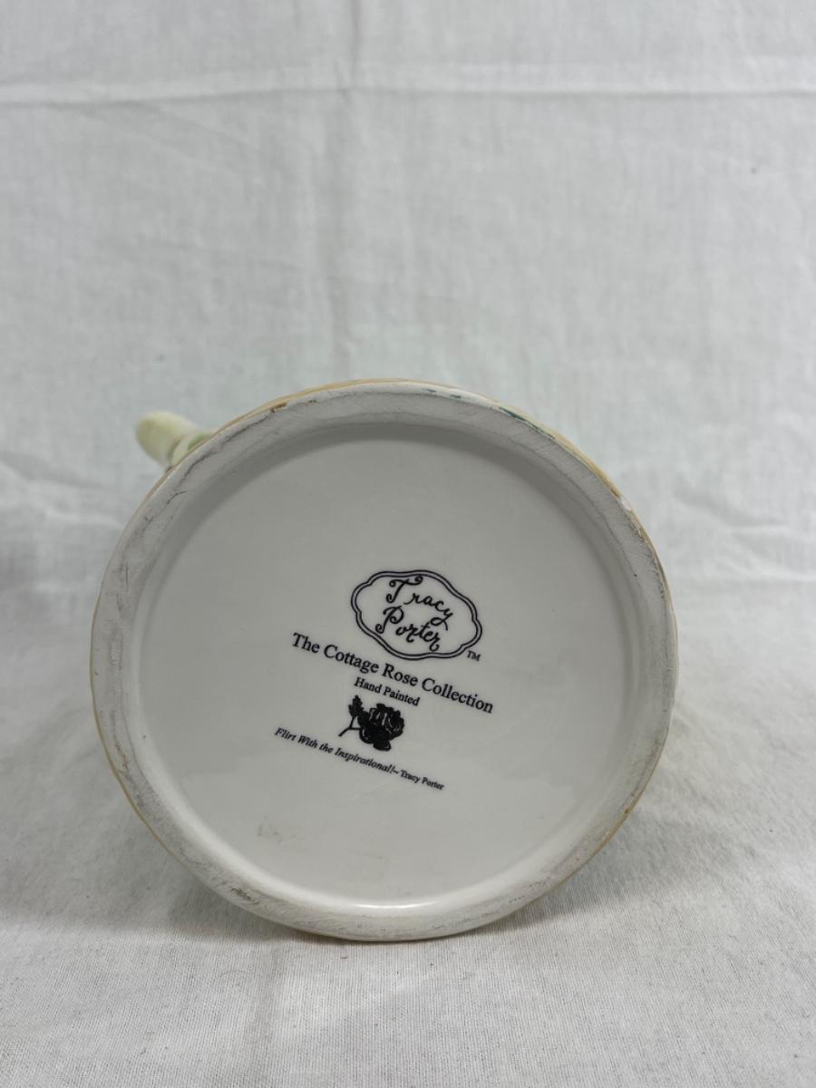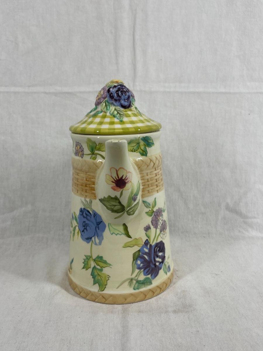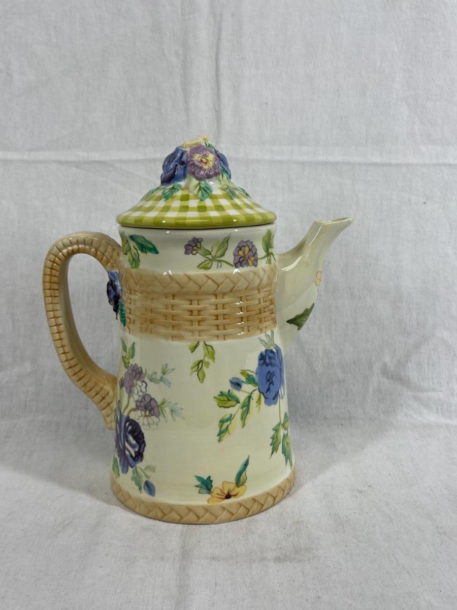 Tracy Potter The Cottage Rose Collection tea pot. Colorful floral design. Good condition. About 9" size.