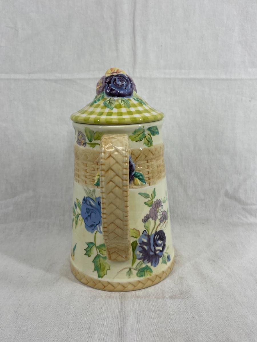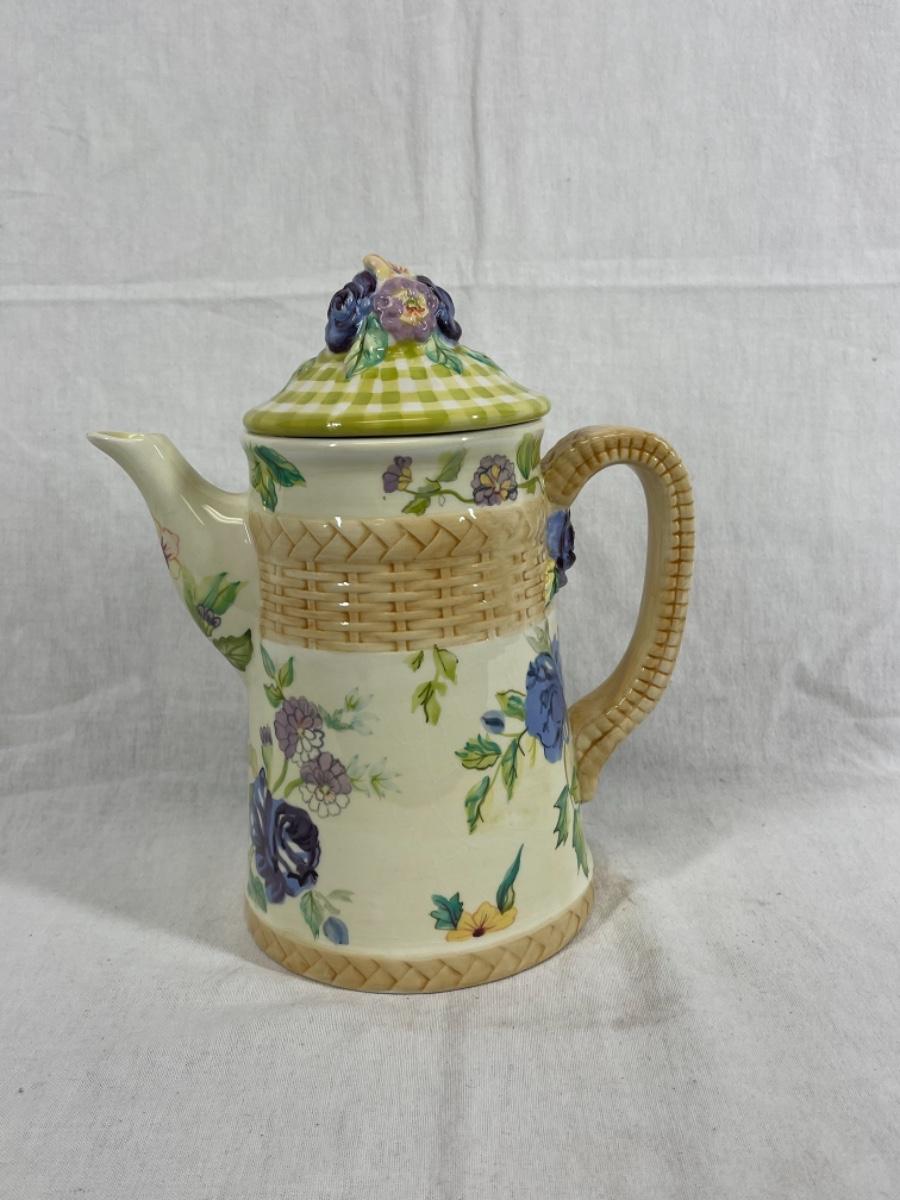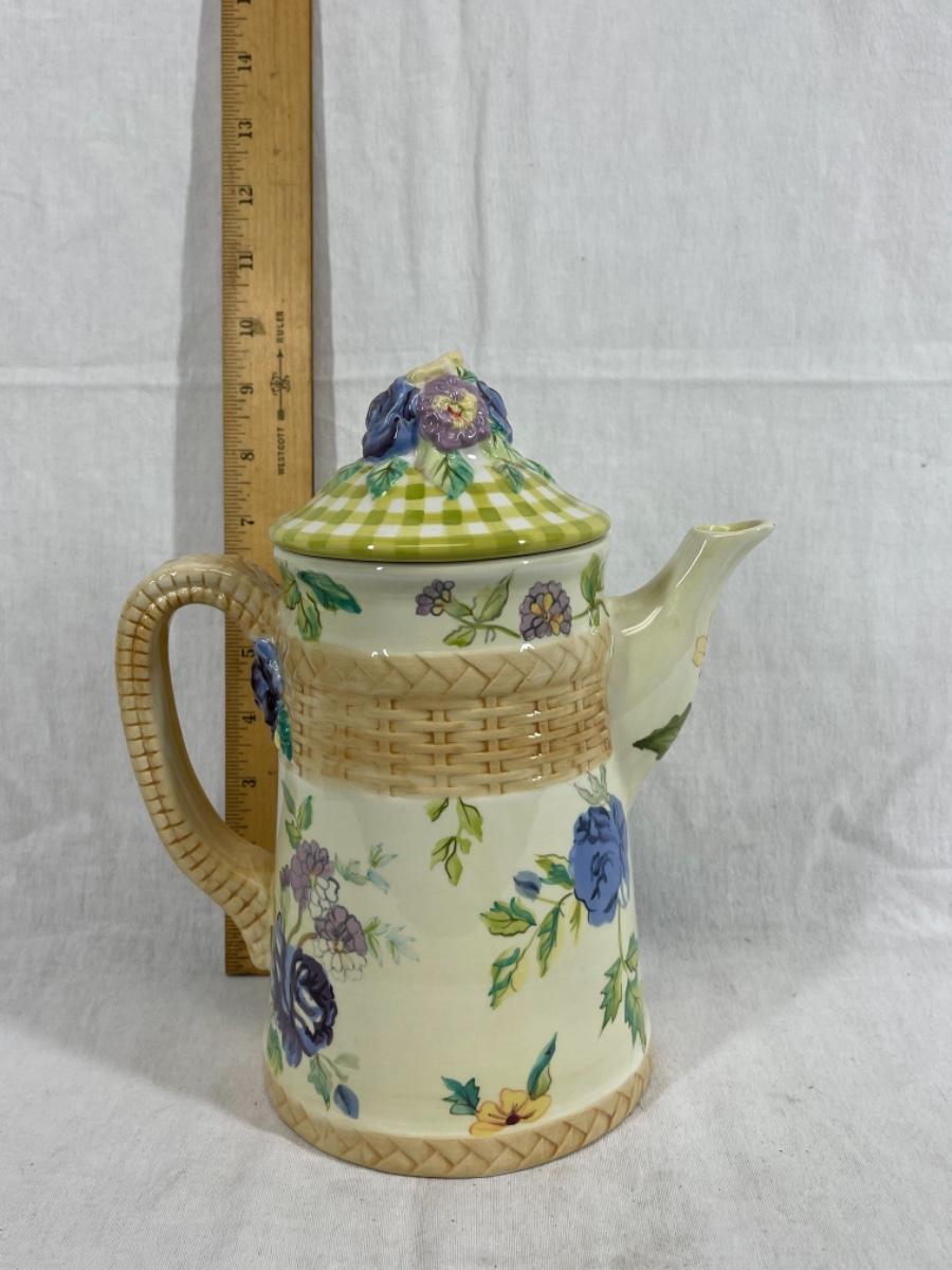Tracy Potter The Cottage Rose Collection tea pot. Colorful floral design. Good condition. About 9" size.