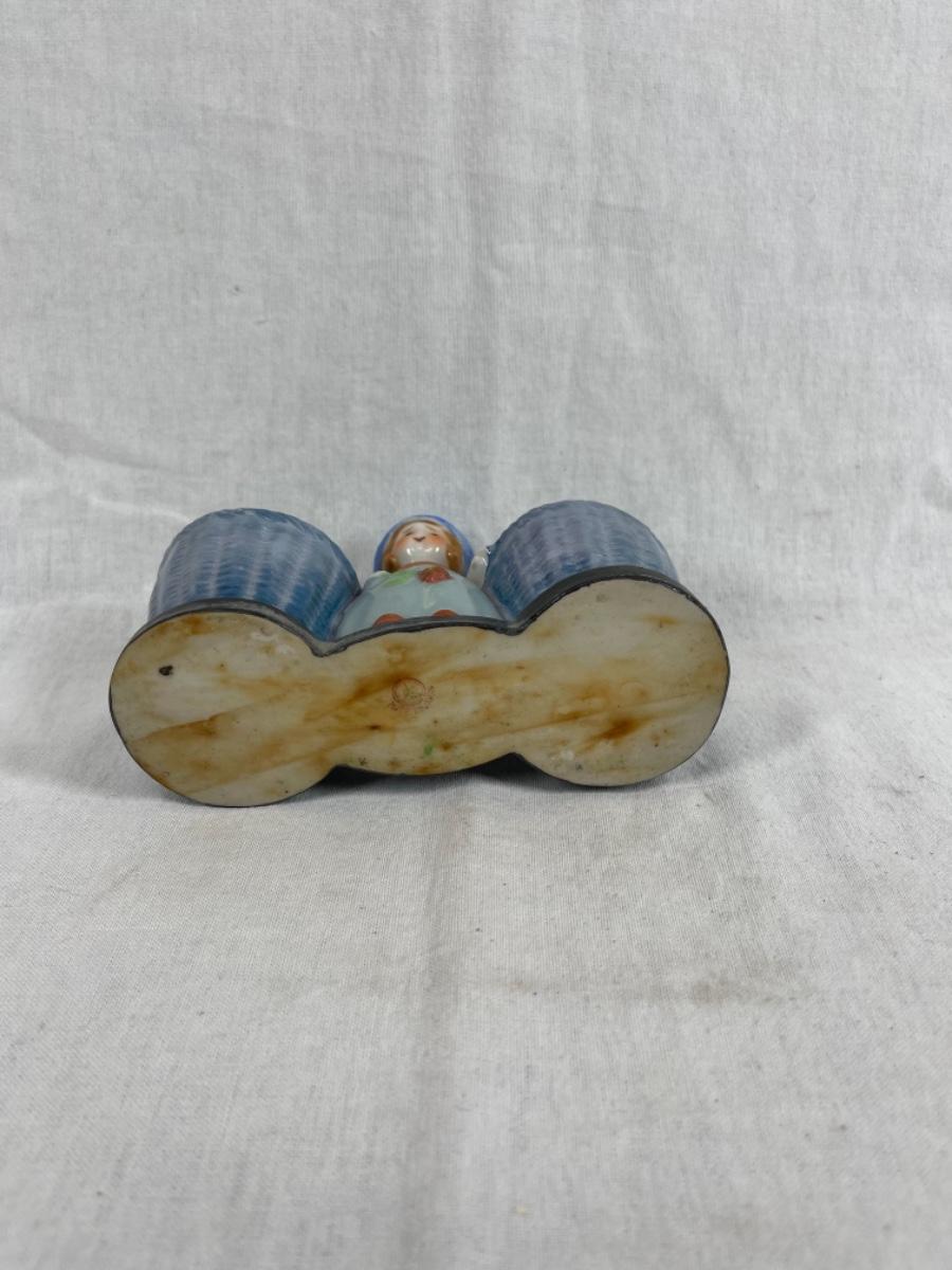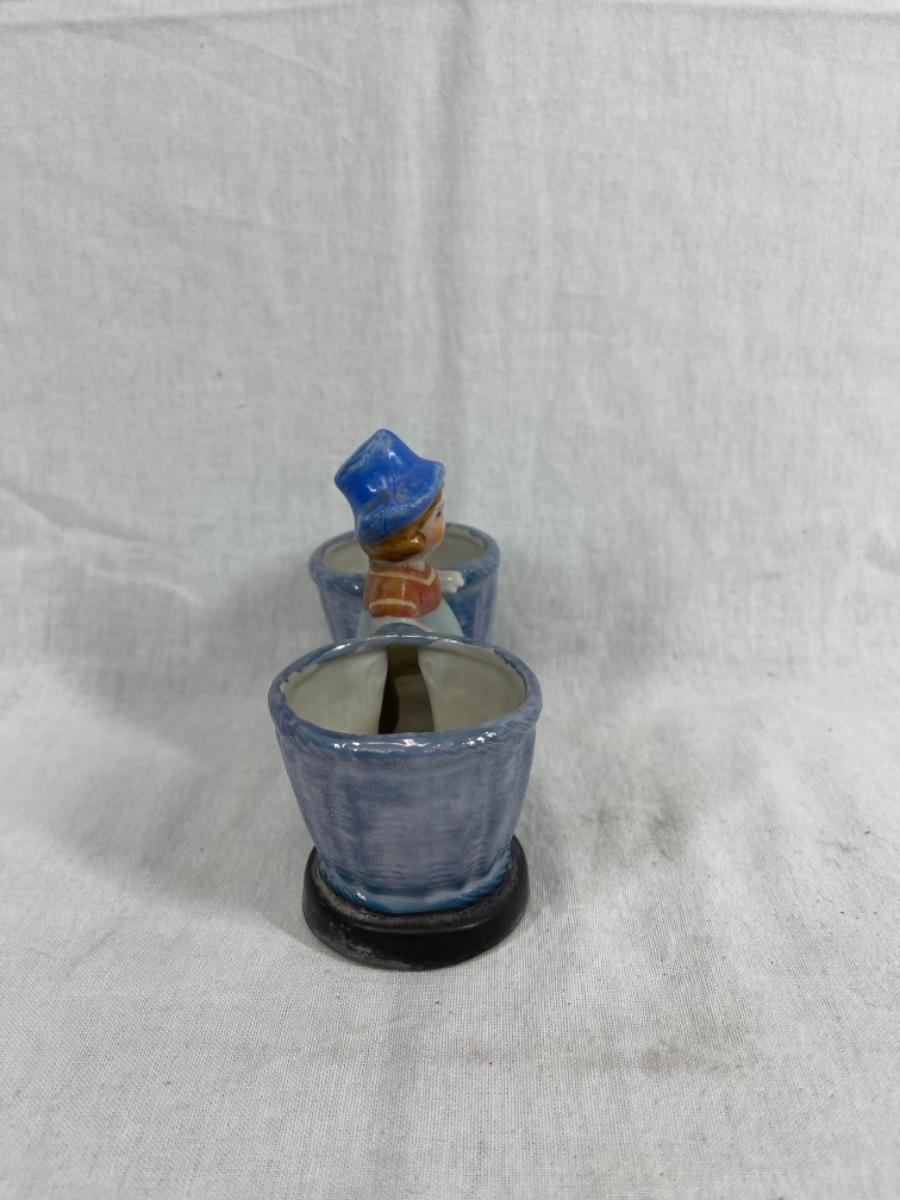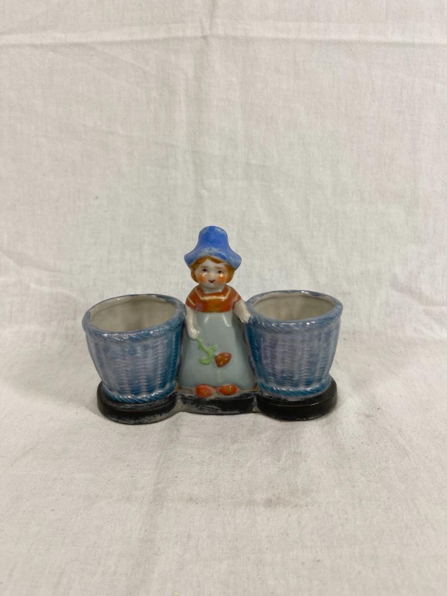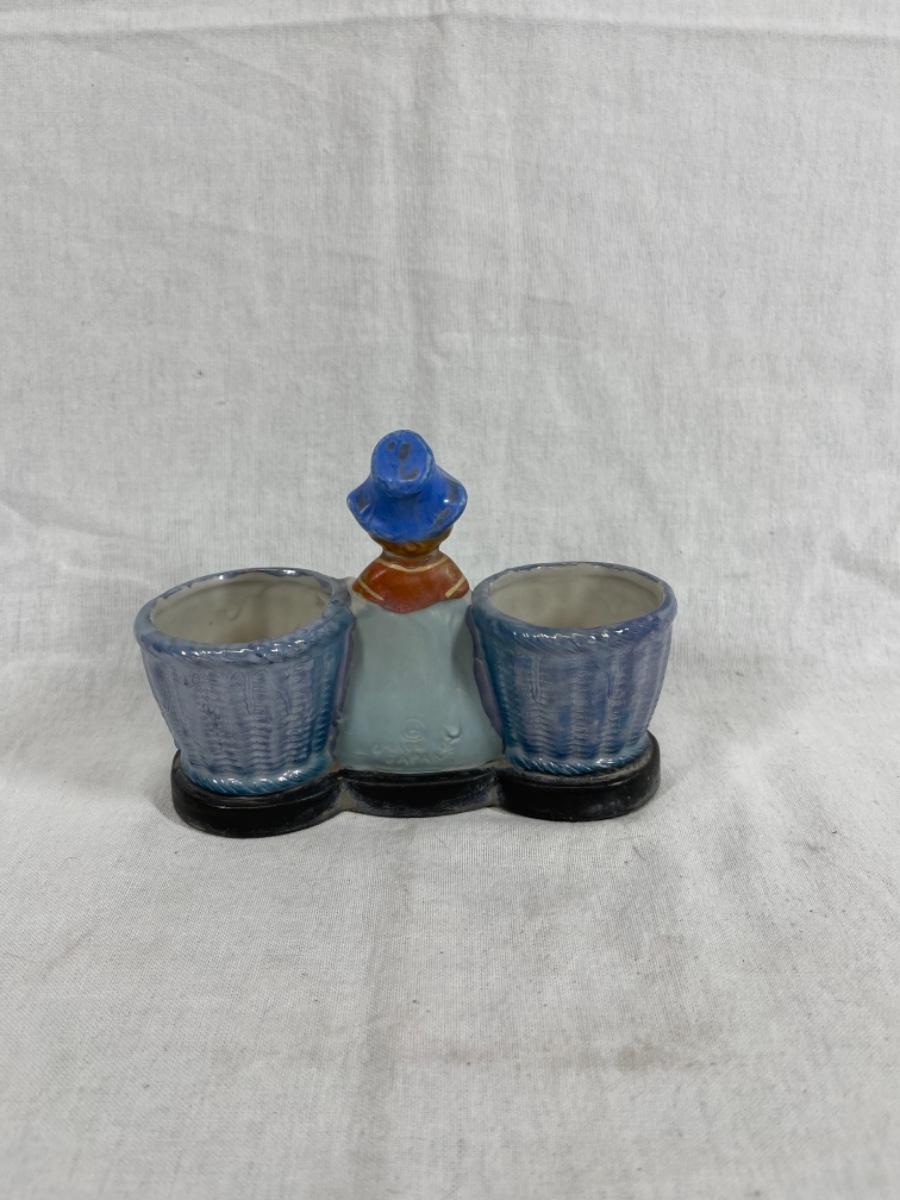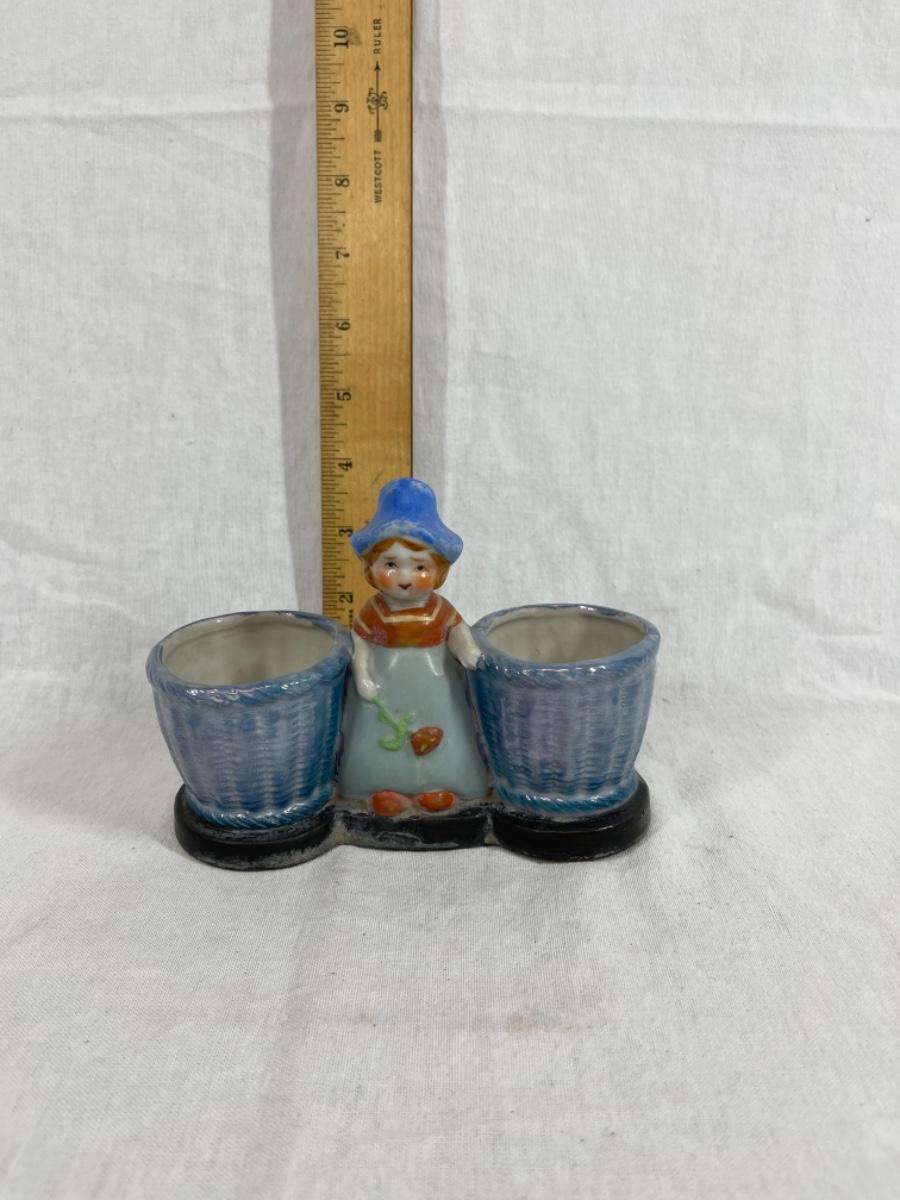 Vintage ceramic Dutch girl with baskets figurine. May have been a shaker holder or something similar. Vintage condition. About 6" length.