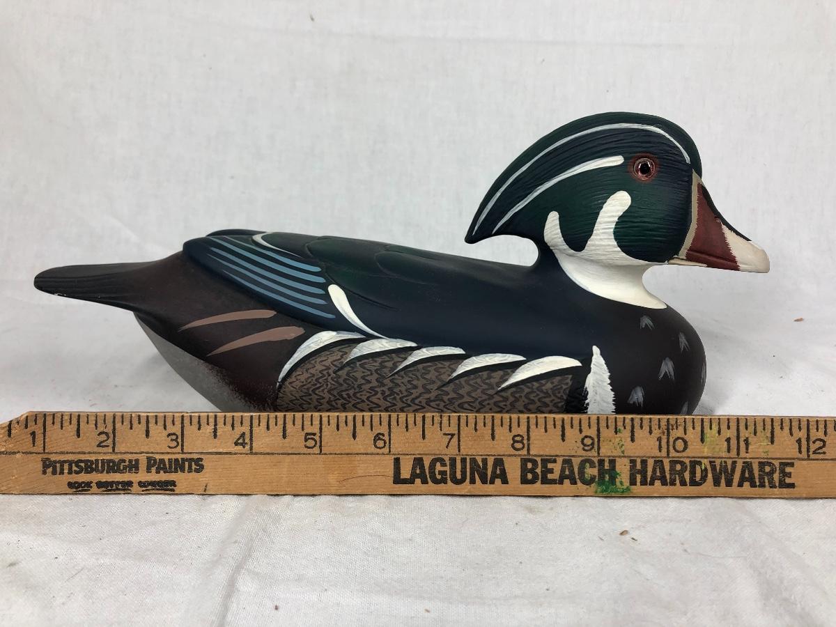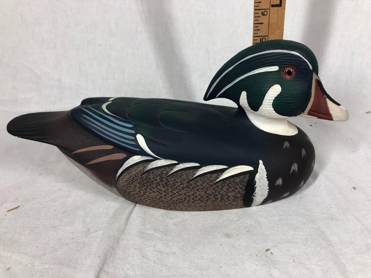 North American Duck Collection carved wood duck decoy. Ontario Wood Duck signed and dated. Displays nicely. Good condition. About 12" size.