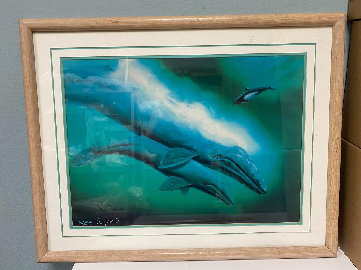 Large Framed Signed Wyland Art Litho Print Humpback Whales 1983
