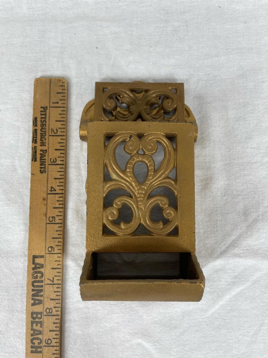 Painted Cast Iron Metal Wall Hanging Matchstick Match Box Holder