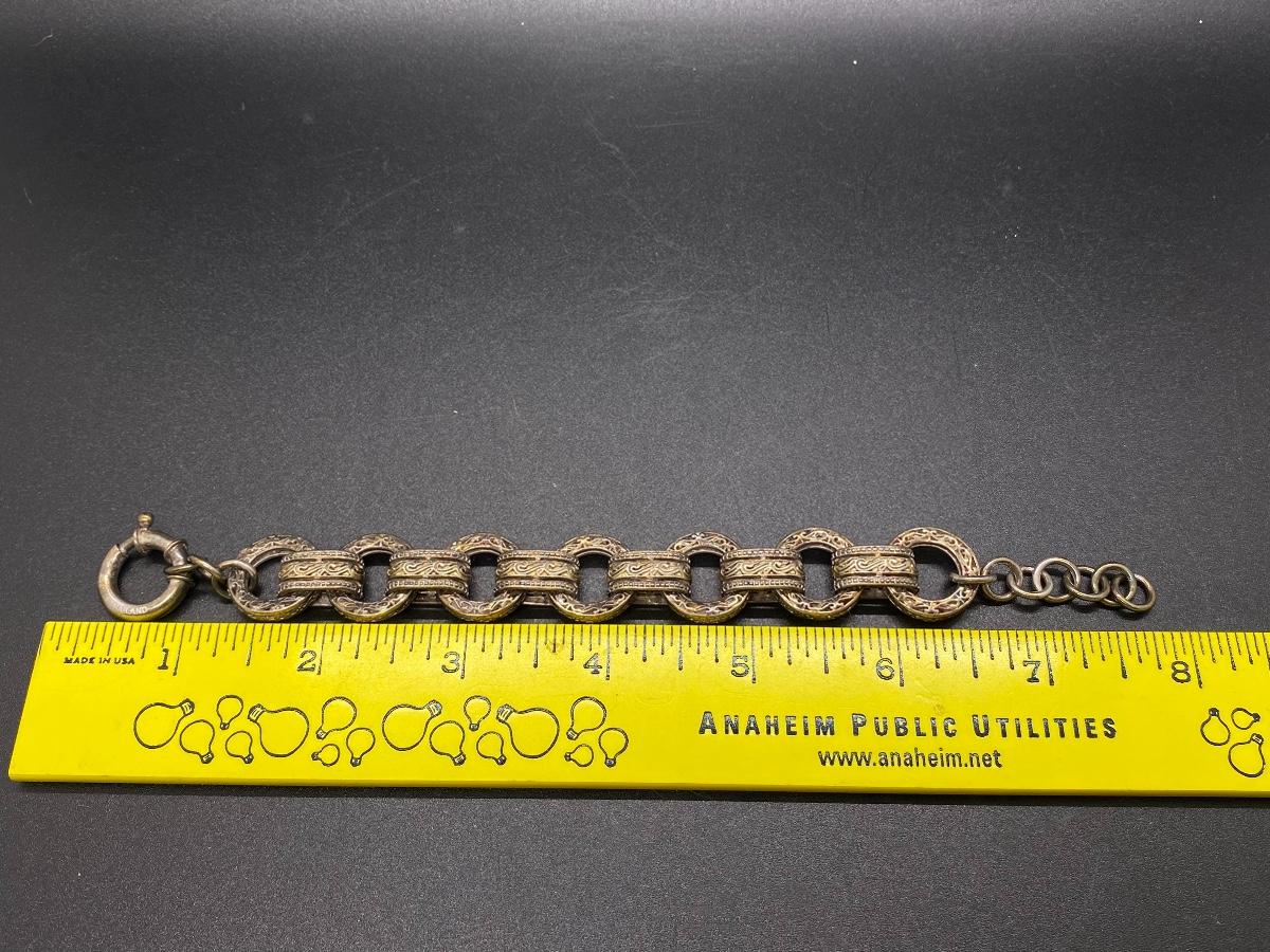 ASJ Mauritius 925 Sterling Silver Goldtone Vermeil Scroll Design Link Bracelet 7 ½”