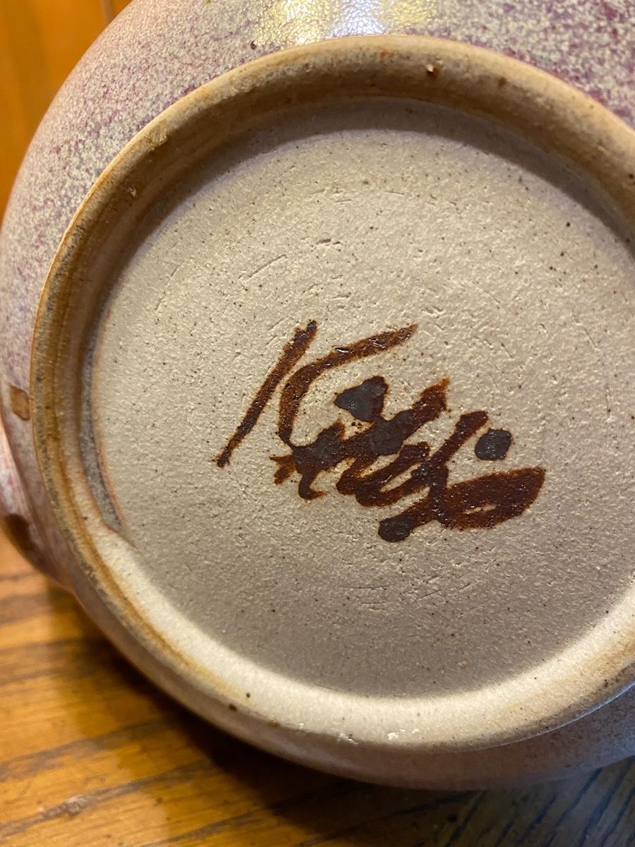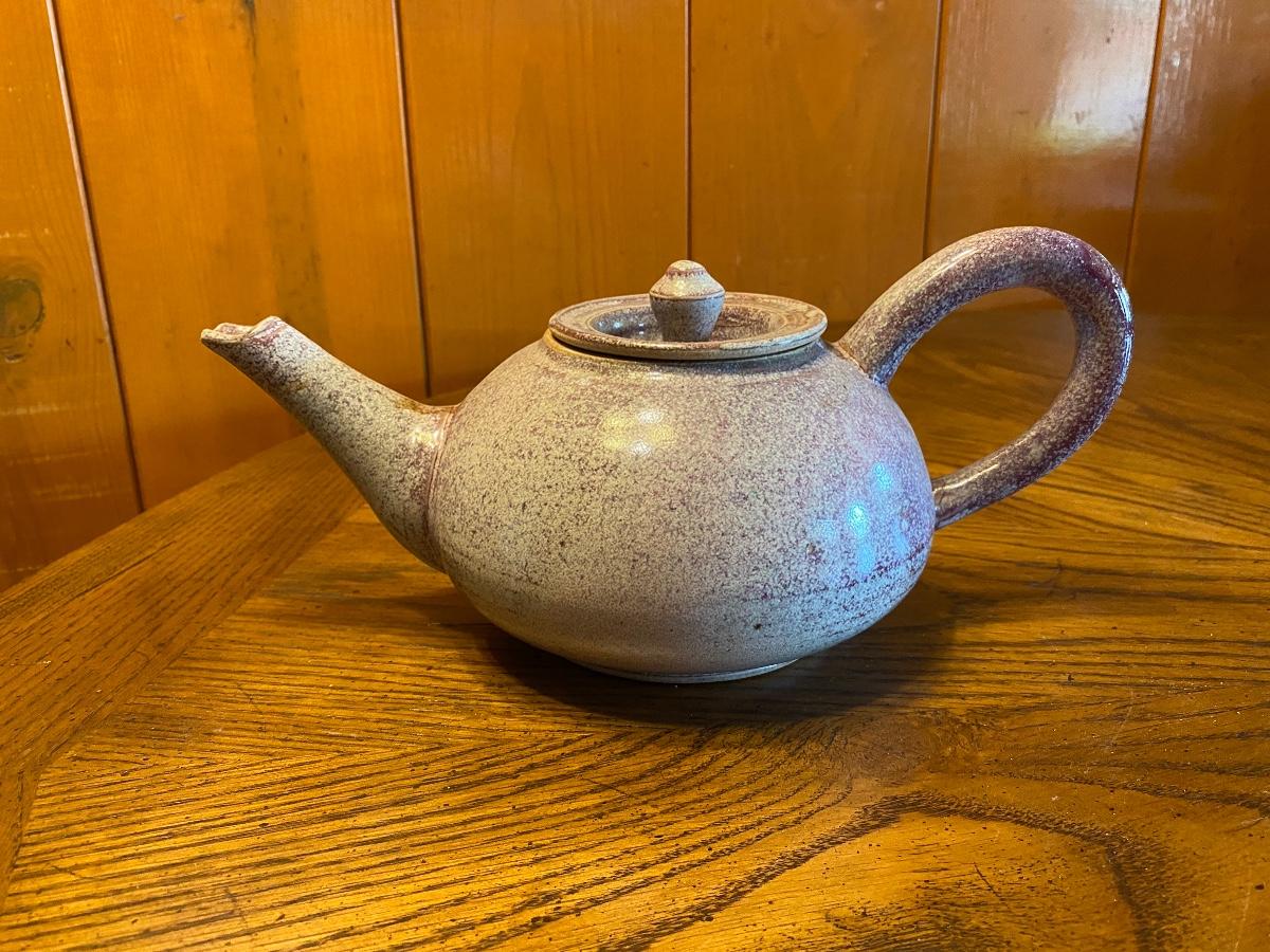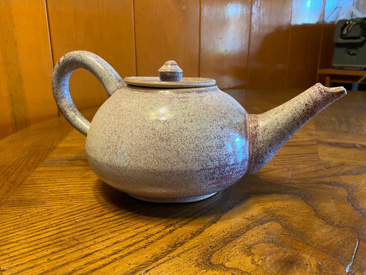 Vintage Mid Century Speckled Pottery Tea Pot Signed