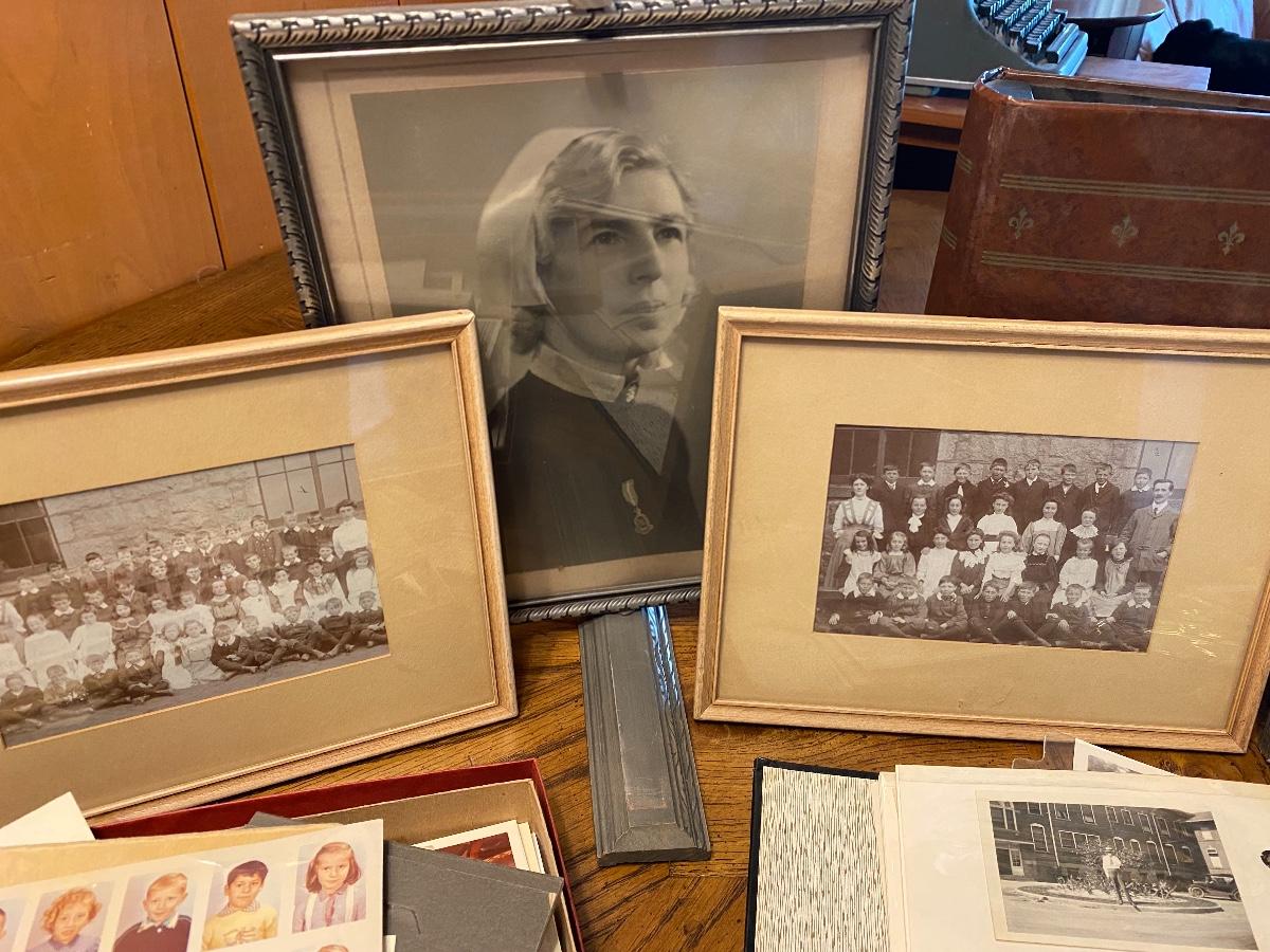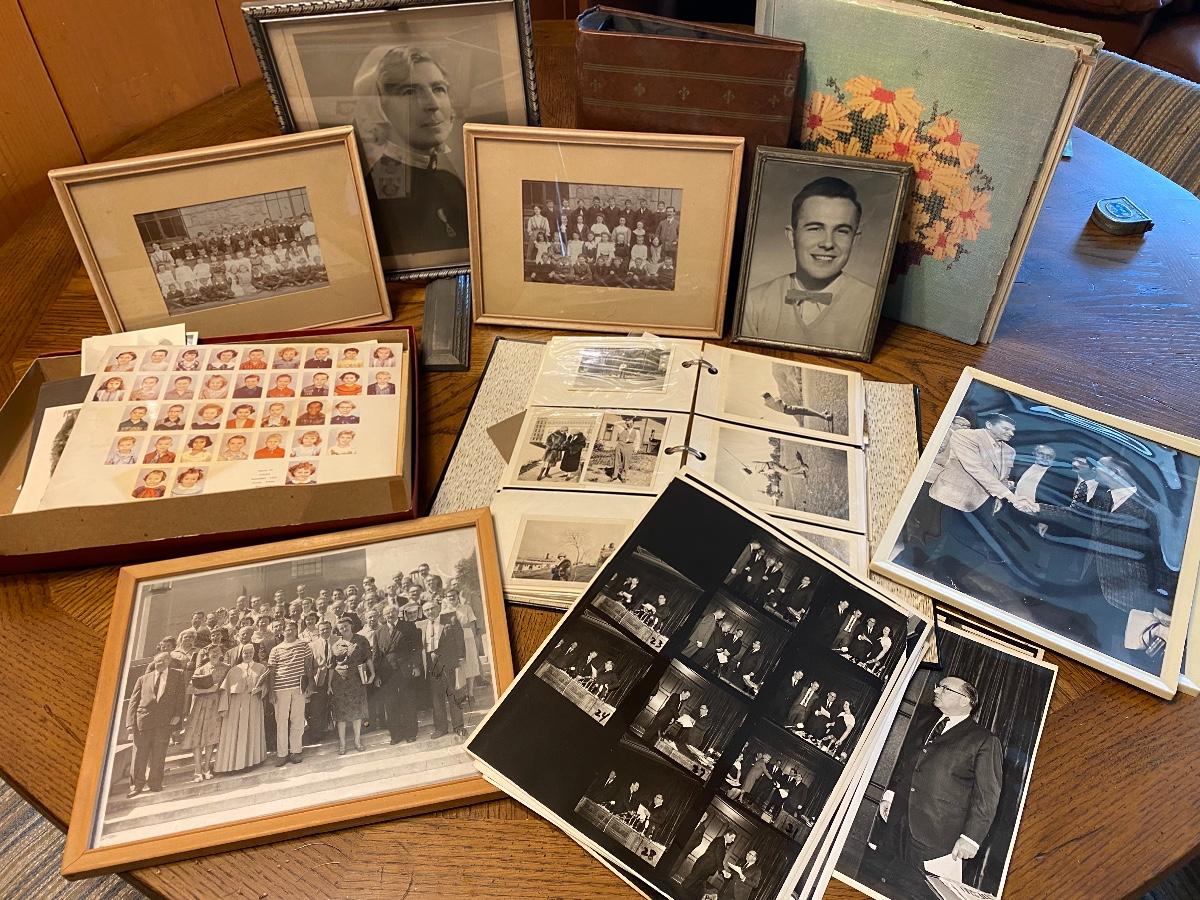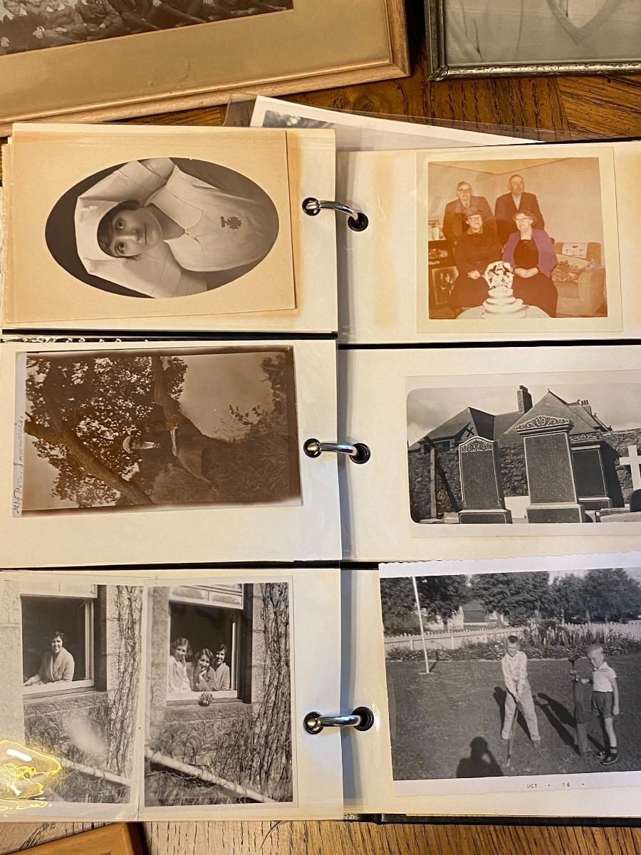 Lot of vintage black and white photos. Some in albums, some framed, some loose.