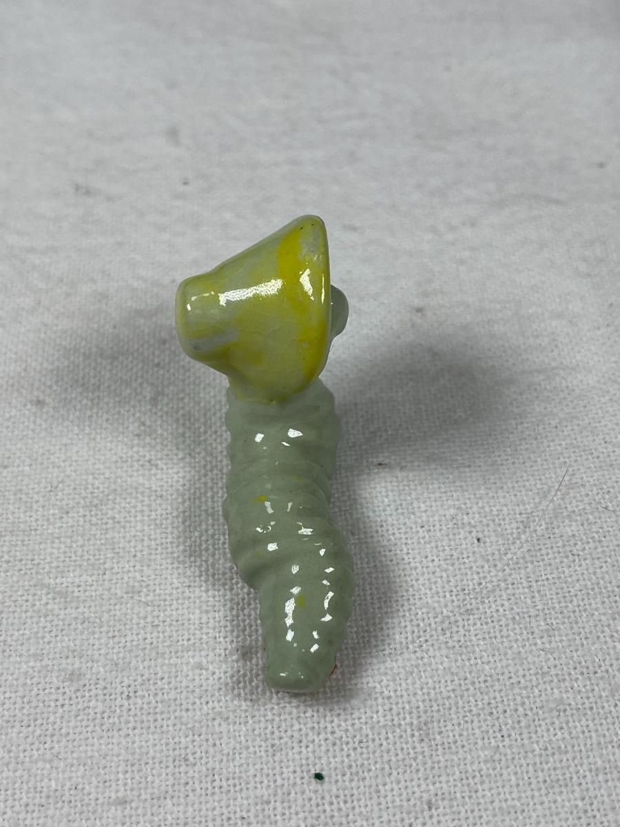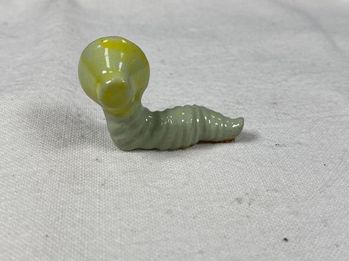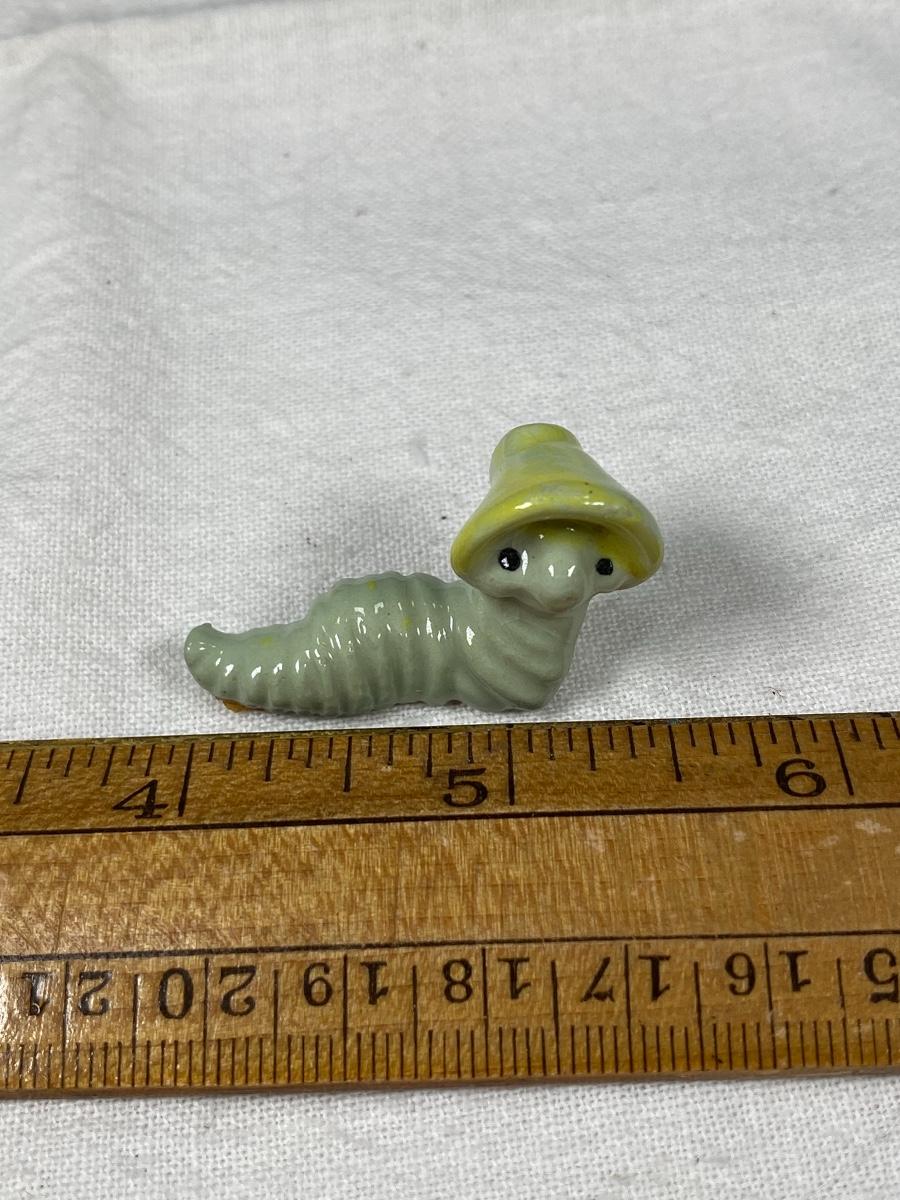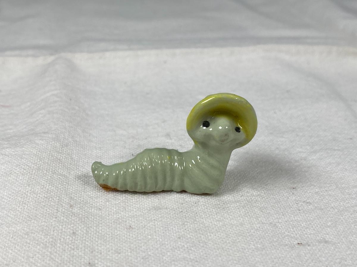 Vintage Hagen Renaker Inch Worm Caterpillar in Bonnet Miniature Figurine. Super cute. About 1".