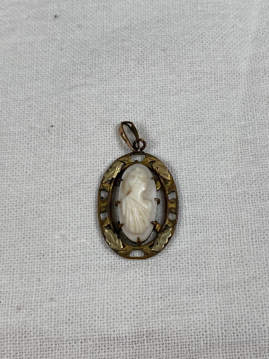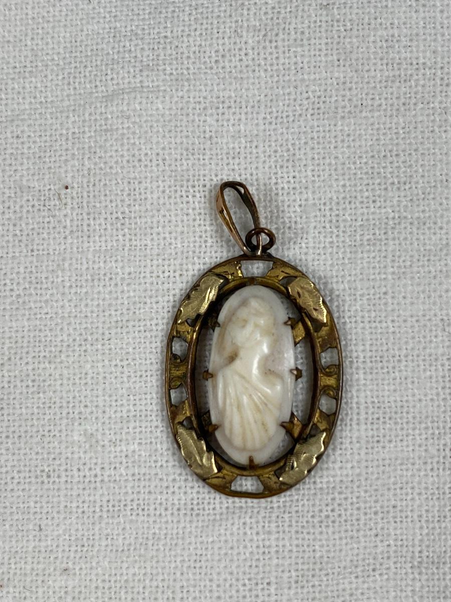 Small Vintage Cameo Style Pendant Charm. Looks old. About 1" size.