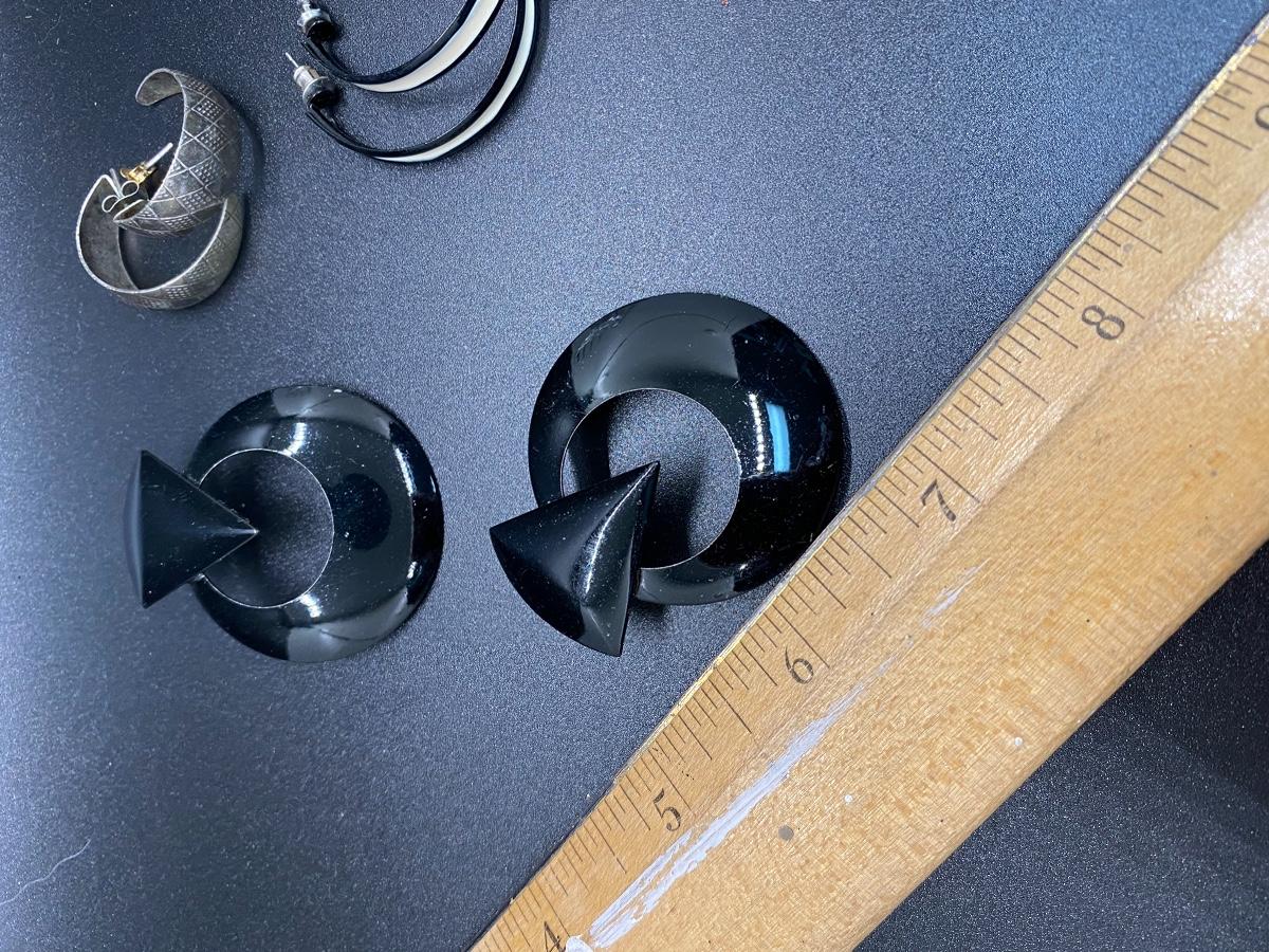 Set of 3 Retro 1980s Black Silver Enamel Metal Earrings