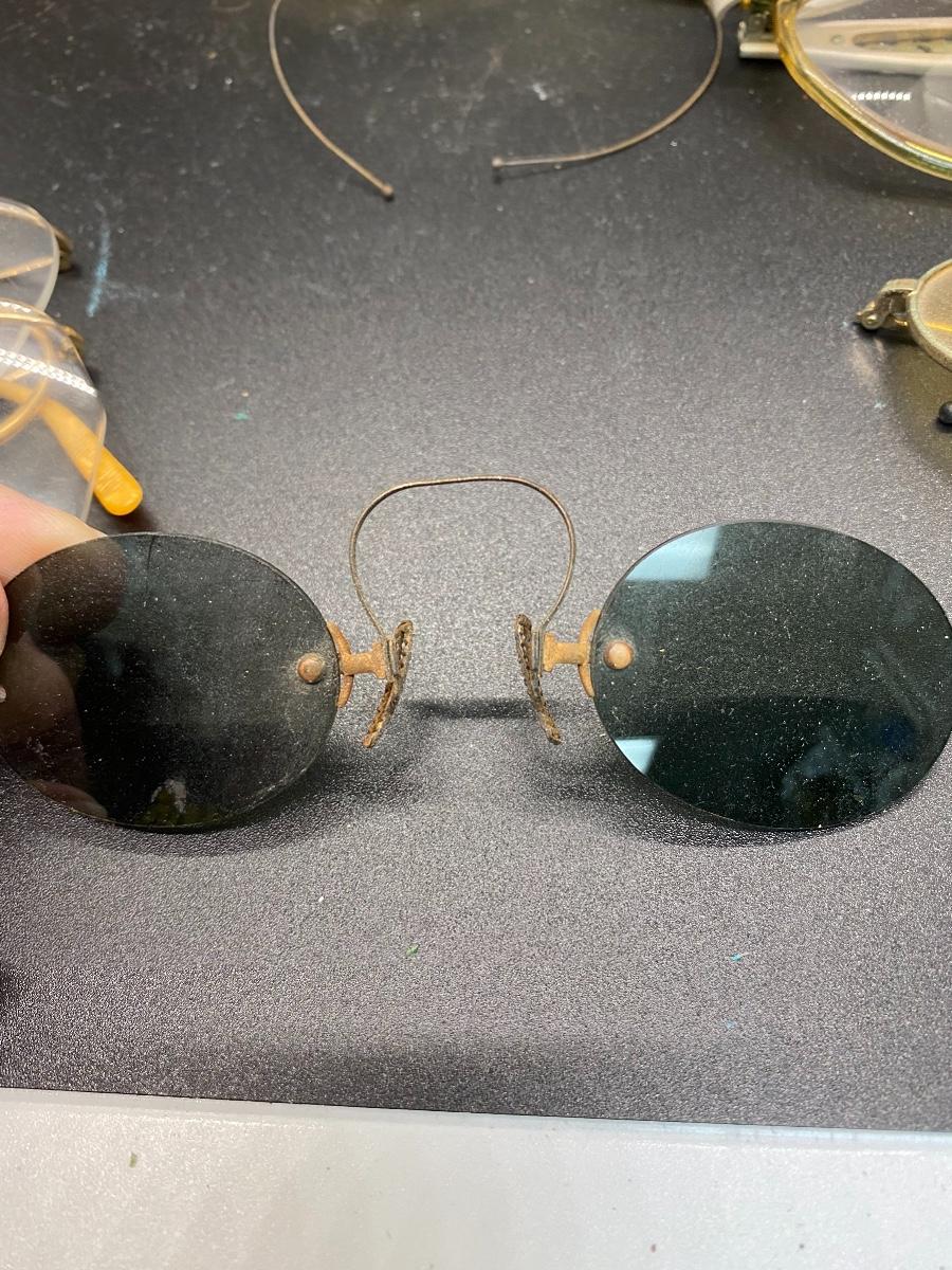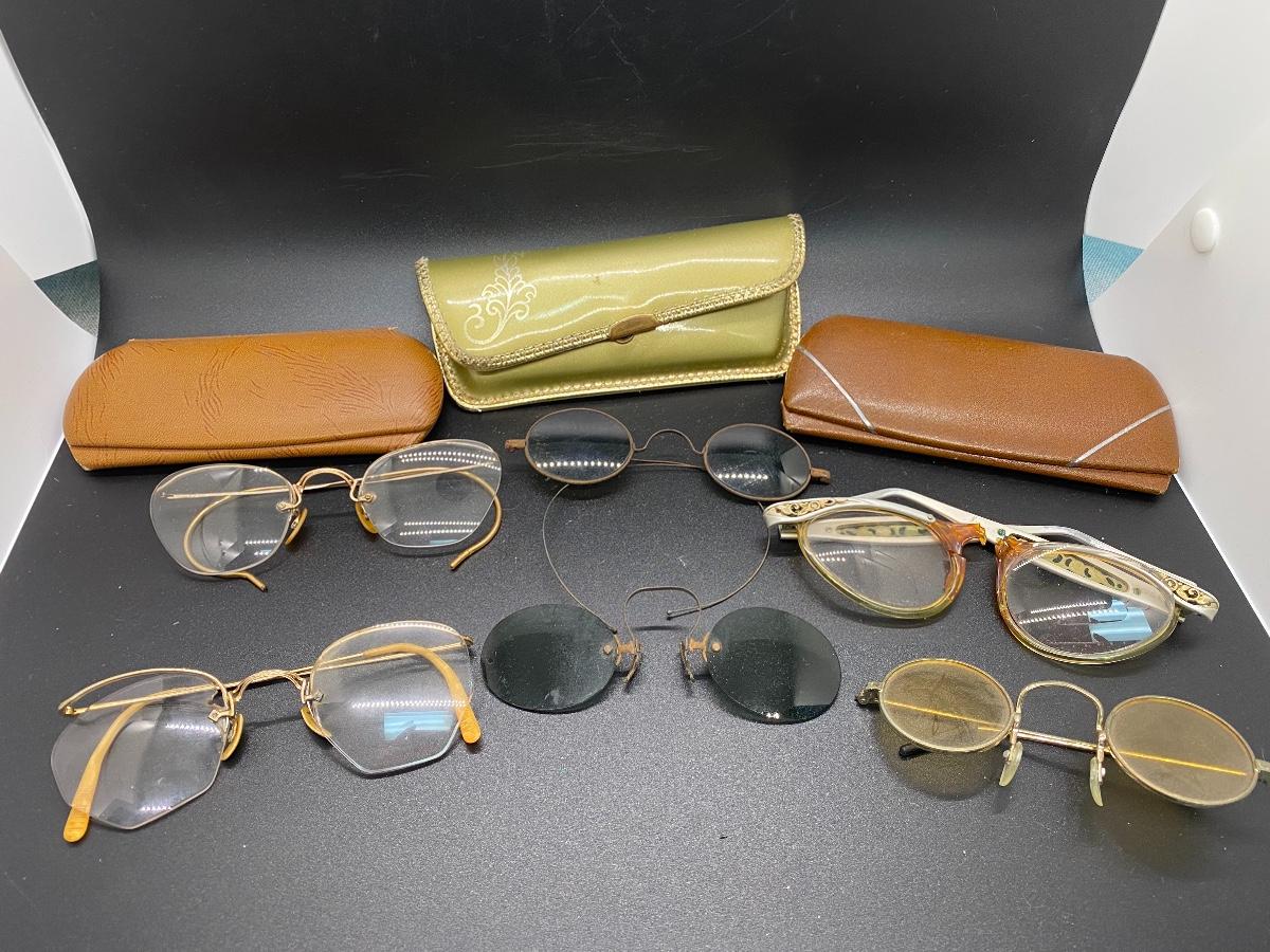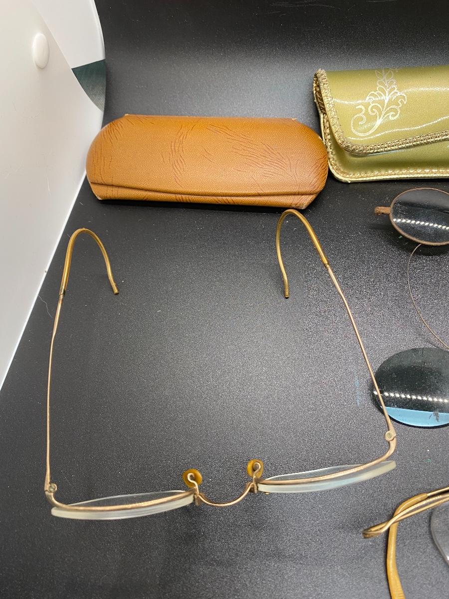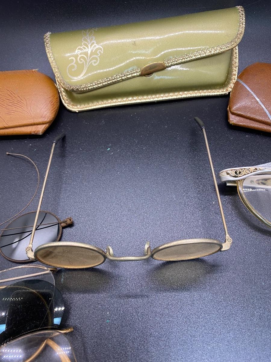 6 pairs of antique and vintage eyeglasses. For repair parts or display. Some have damage, one pair is broken.