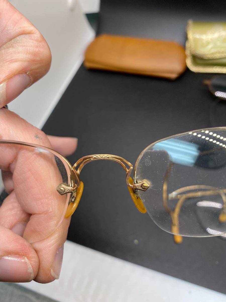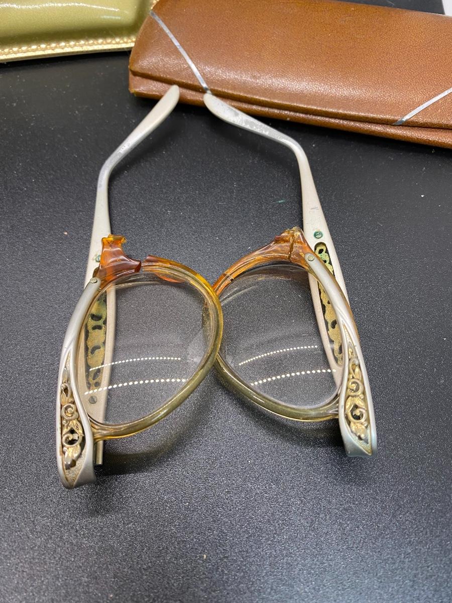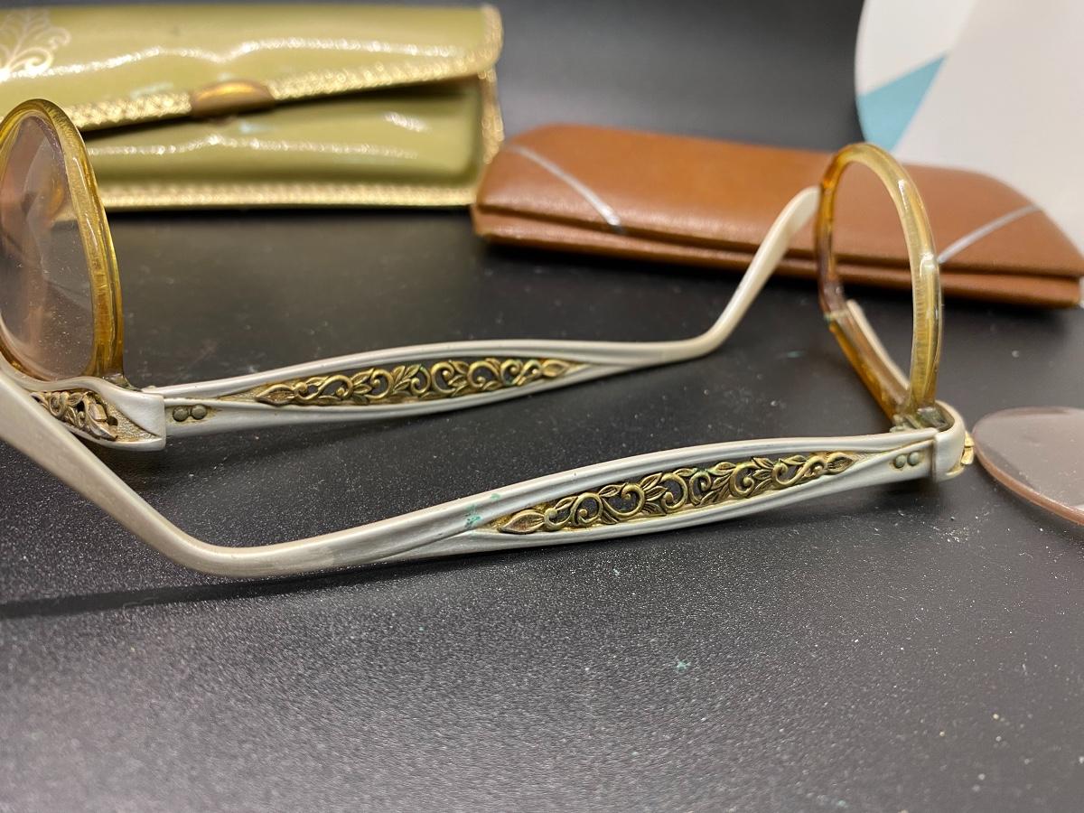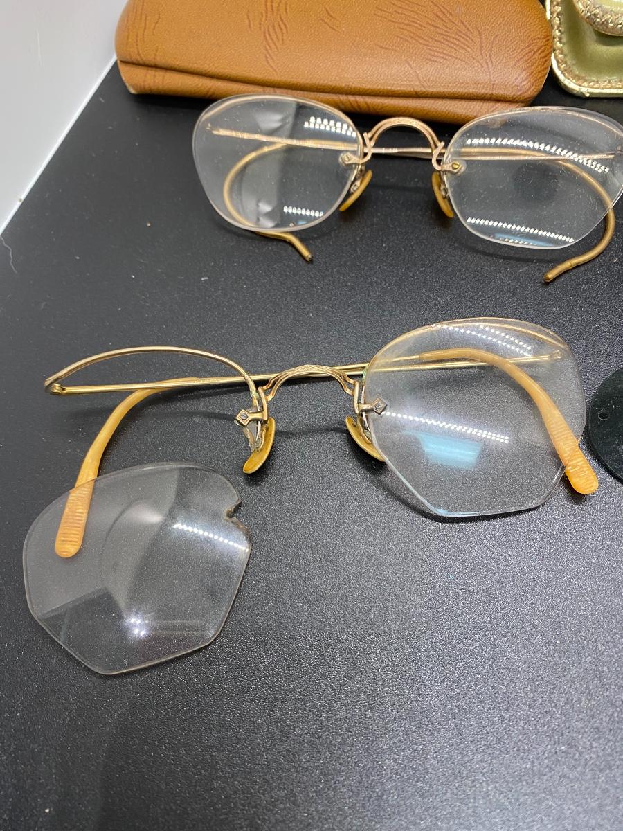 6 pairs of antique and vintage eyeglasses. For repair parts or display. Some have damage, one pair is broken.