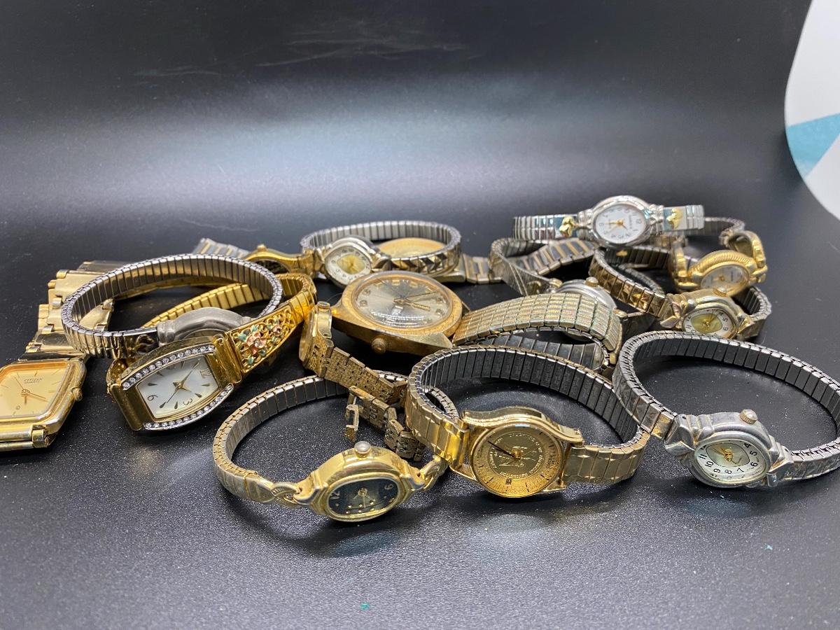 Mixed lot of watches. Most are ladies, a couple mens styles. None are running. For parts or repair.
