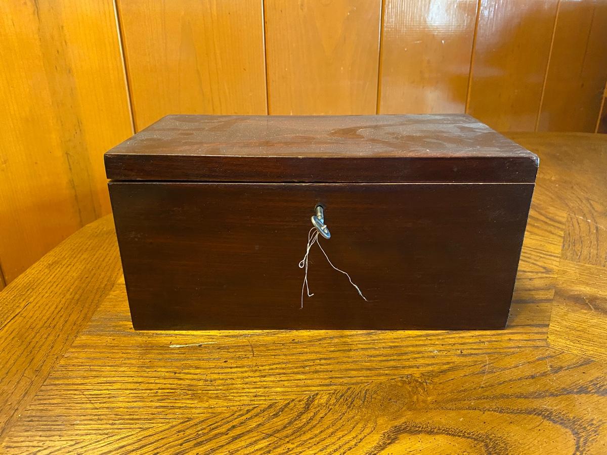 Vintage Wood Locking Box with Key