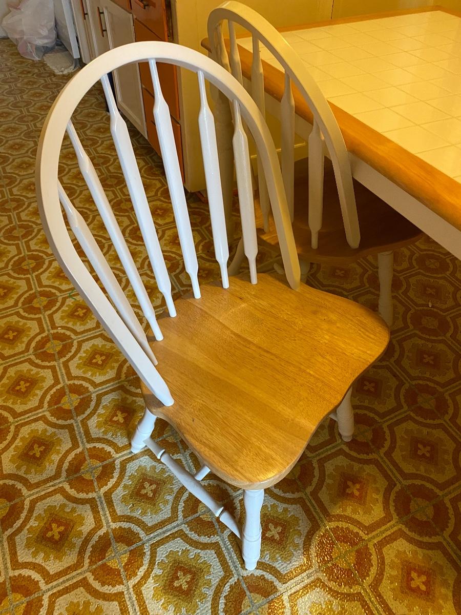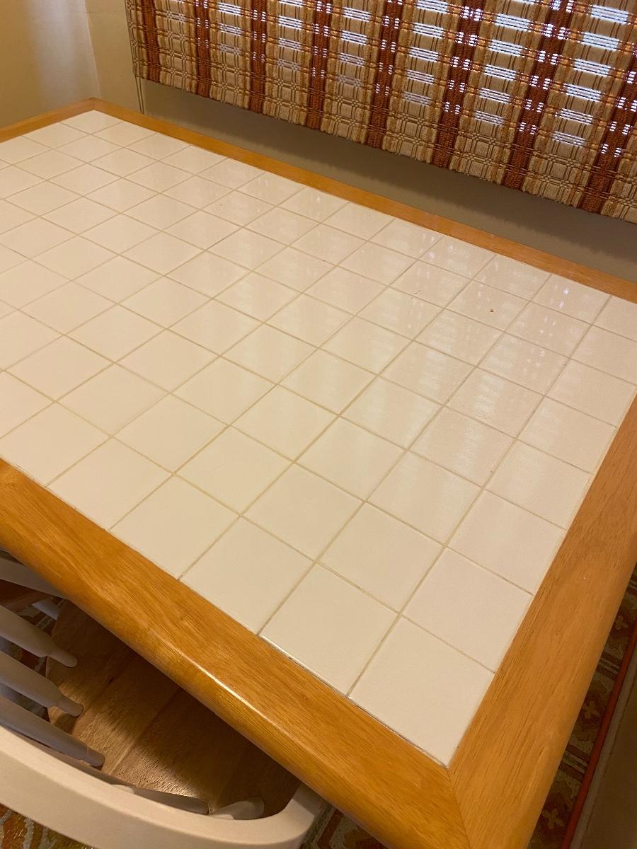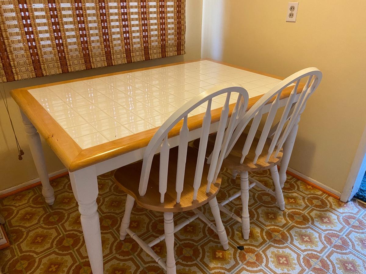 Farmhouse Tile Top Kitchen Table with 2 Chairs. In good used condition.