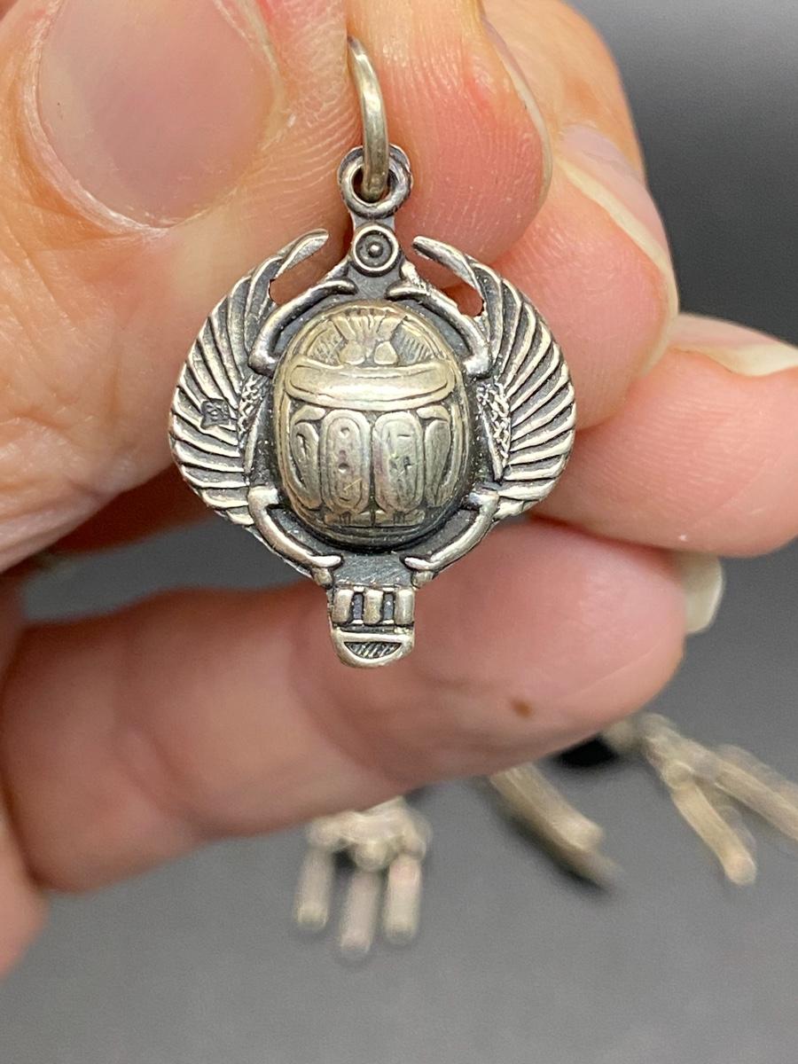 Sterling Silver Southwestern Tribal Scarab Jewelry Lot. The scarab is not marked.