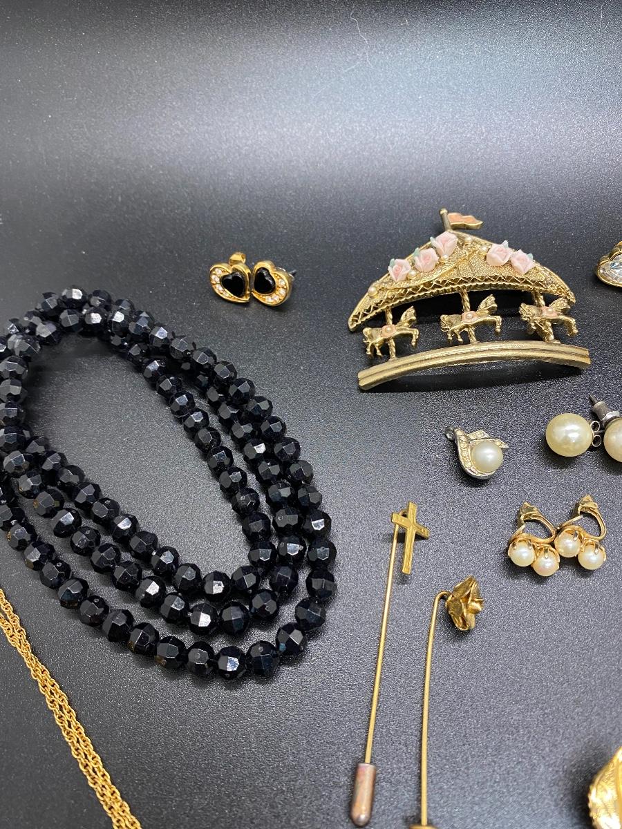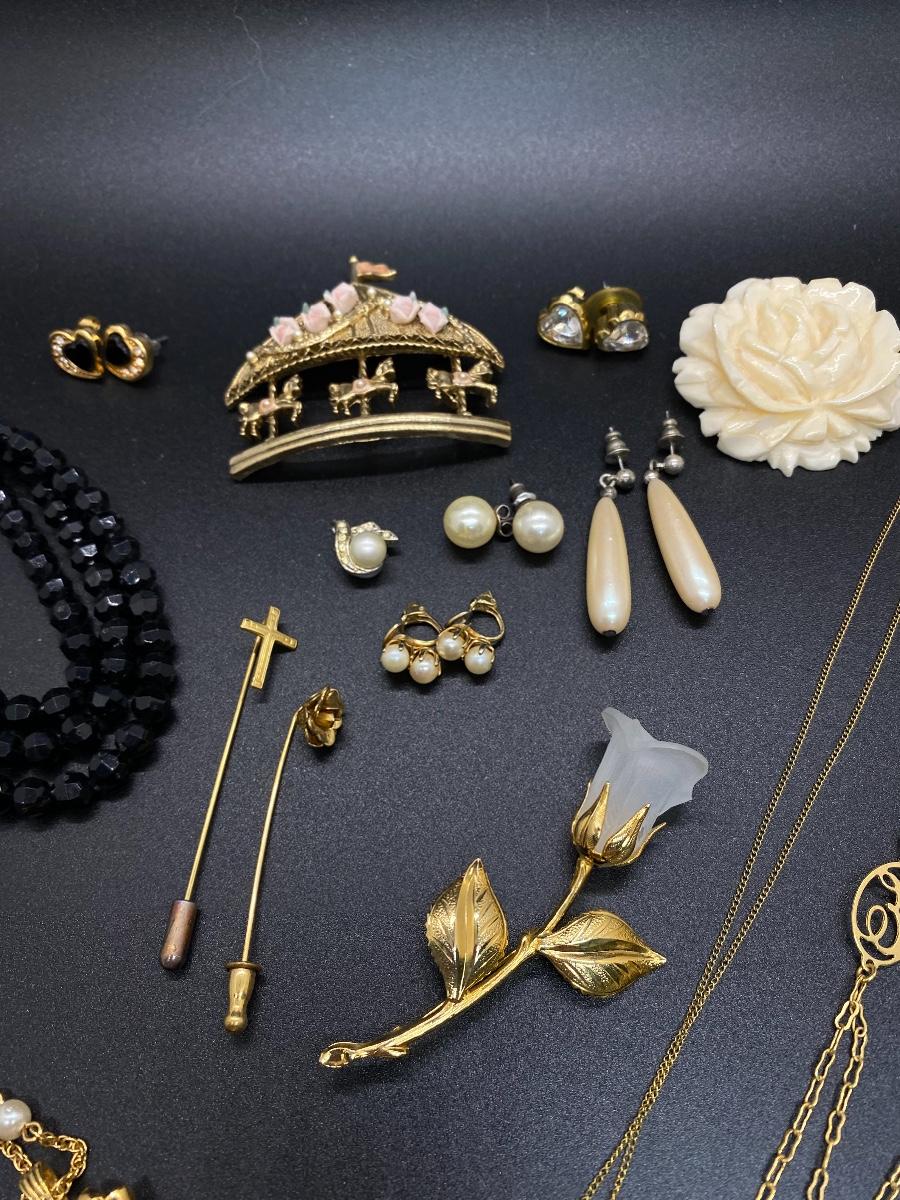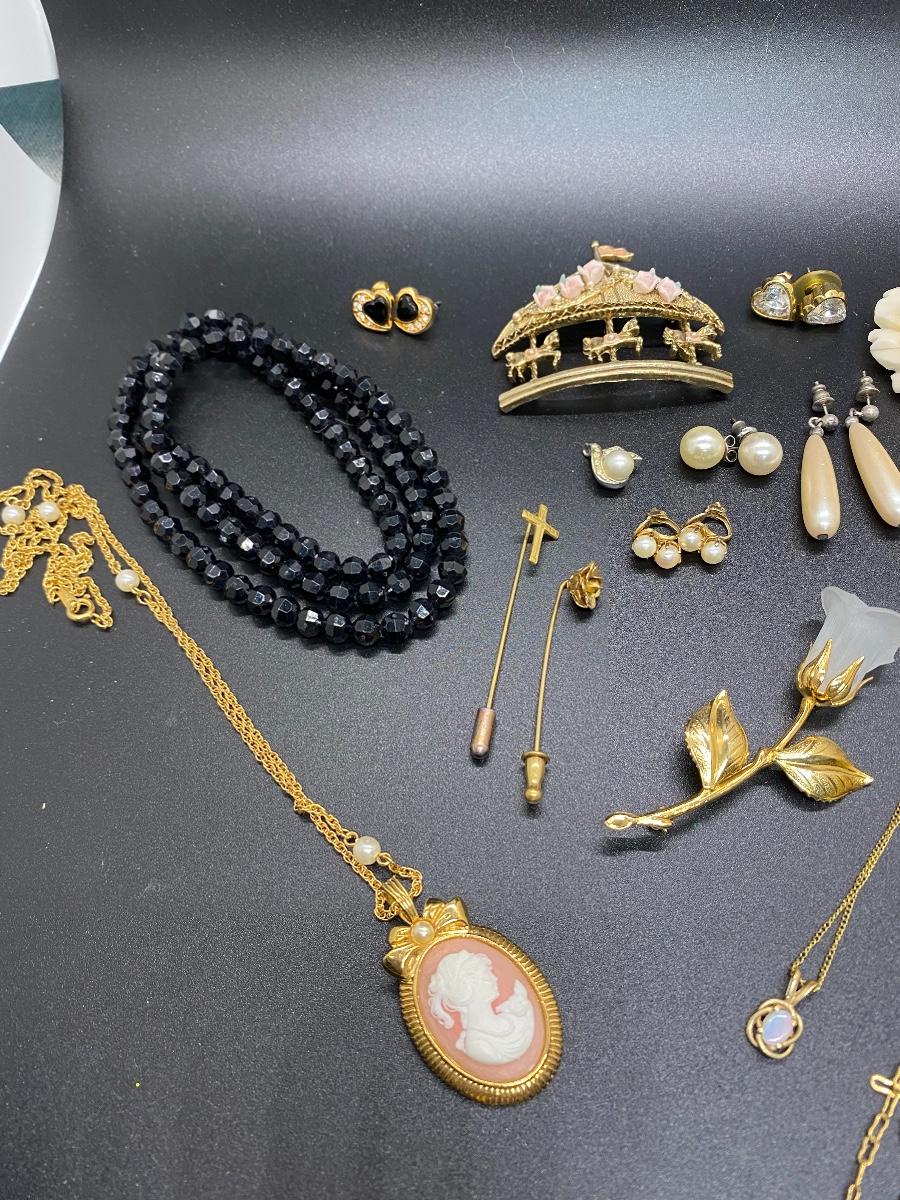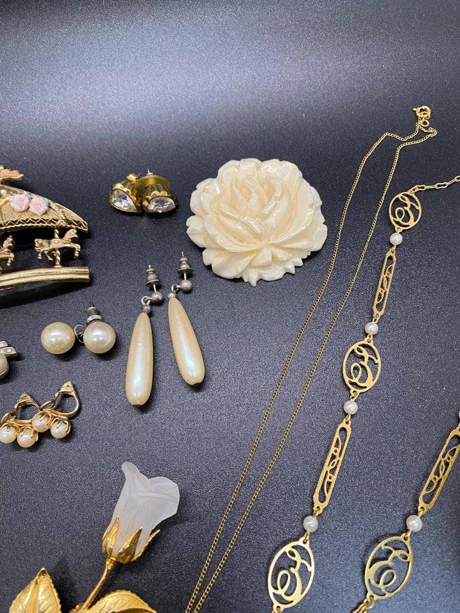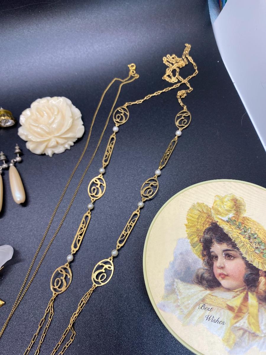 Goldtone Victorian Romance Style Jewelry Lot. Included is the plastic powder/trinket box.