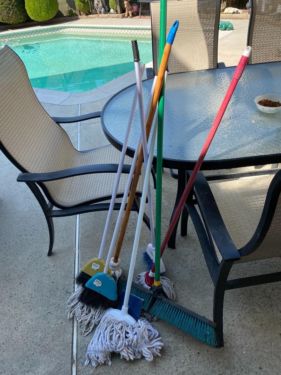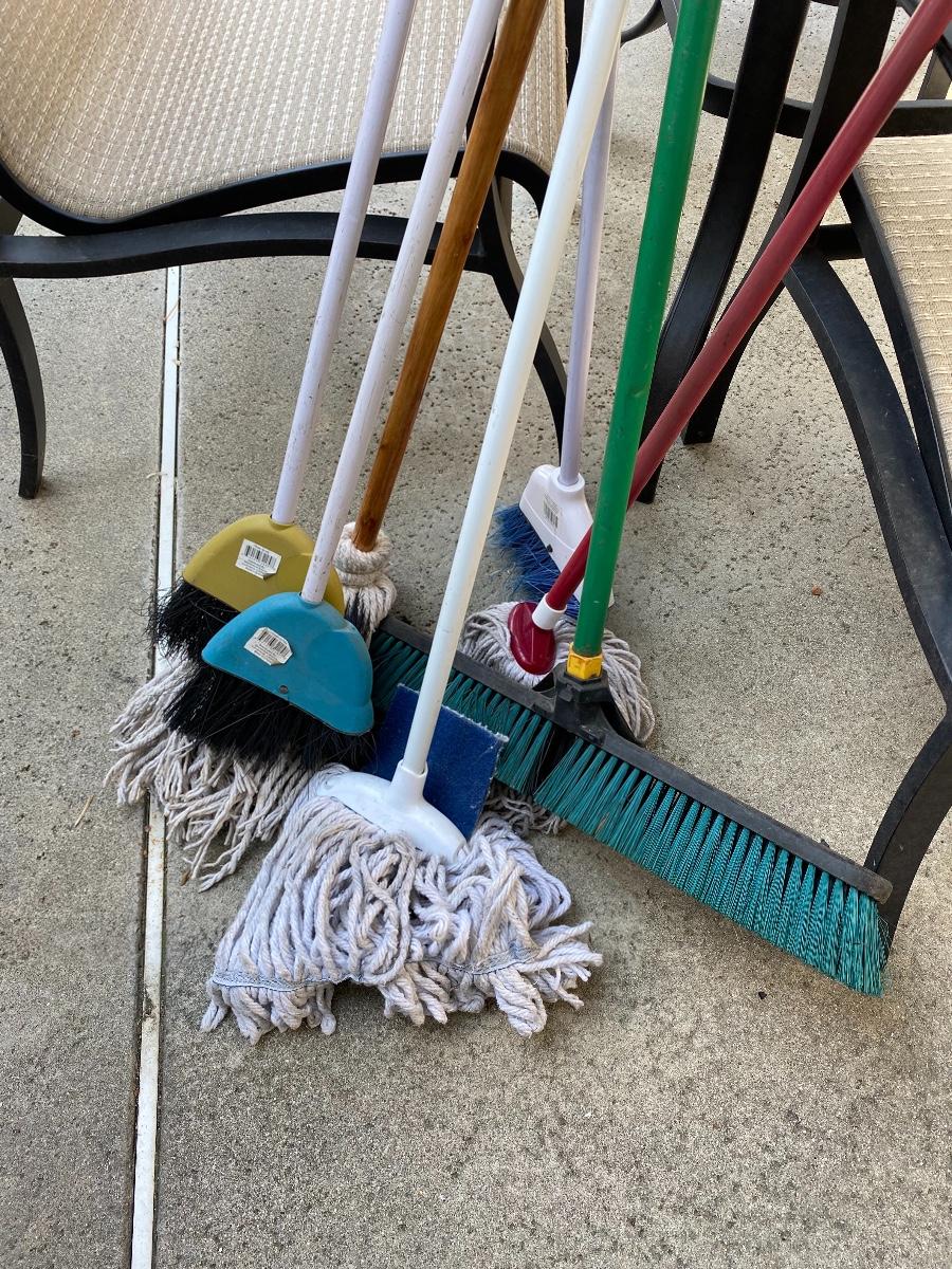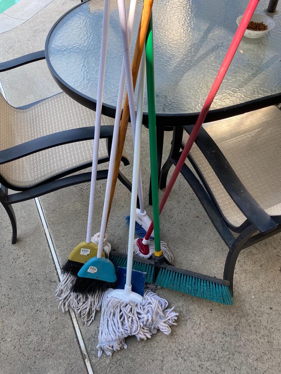 Lot of mops and brooms, there is little use to the mops and brooms, see pictures for more details.