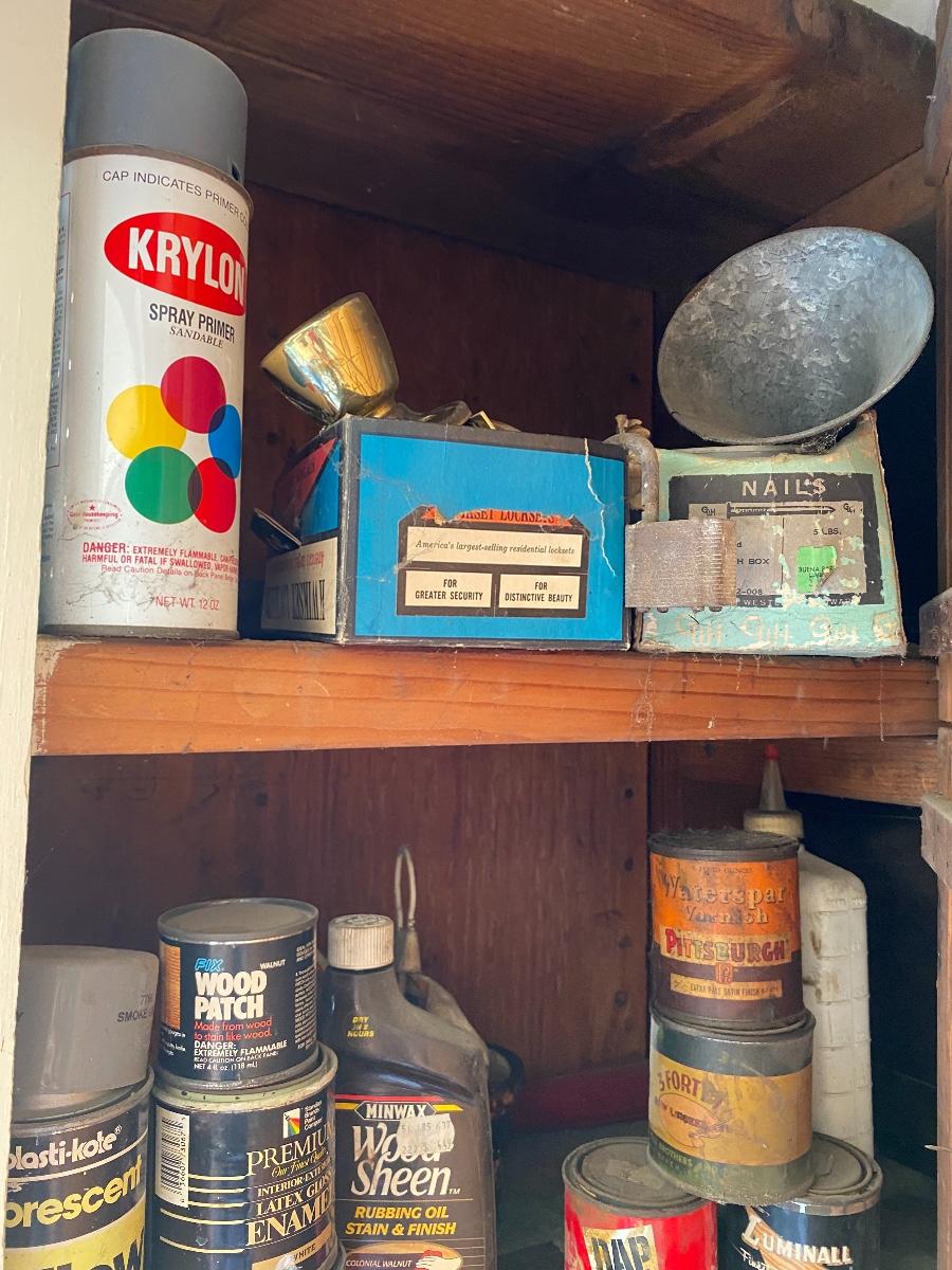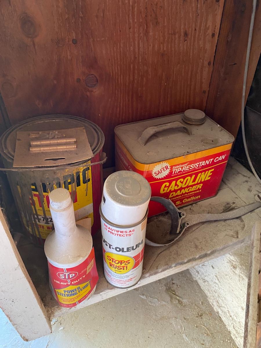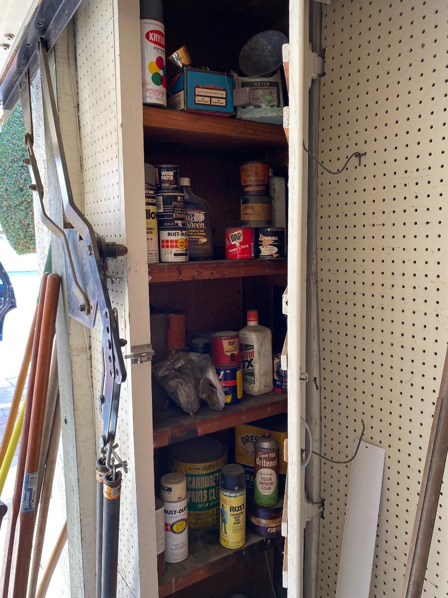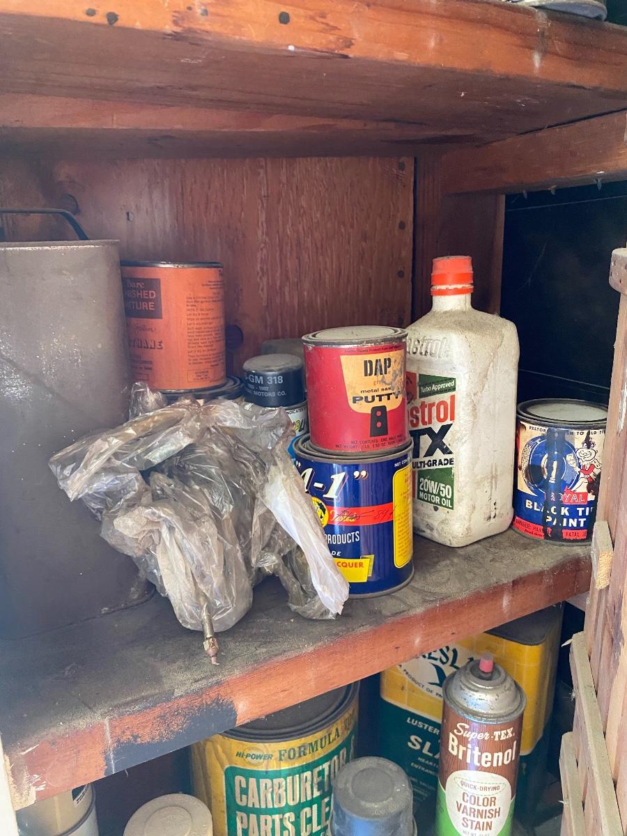 Mixed Lot of Chemicals Paints Automotive Fluids Etc. Everything in the cabinet included.