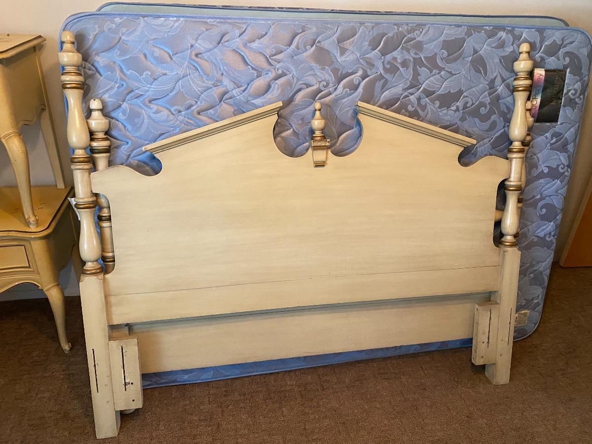 Vintage Off White French Provincial Country Regency Headboard Footboard Bedframe